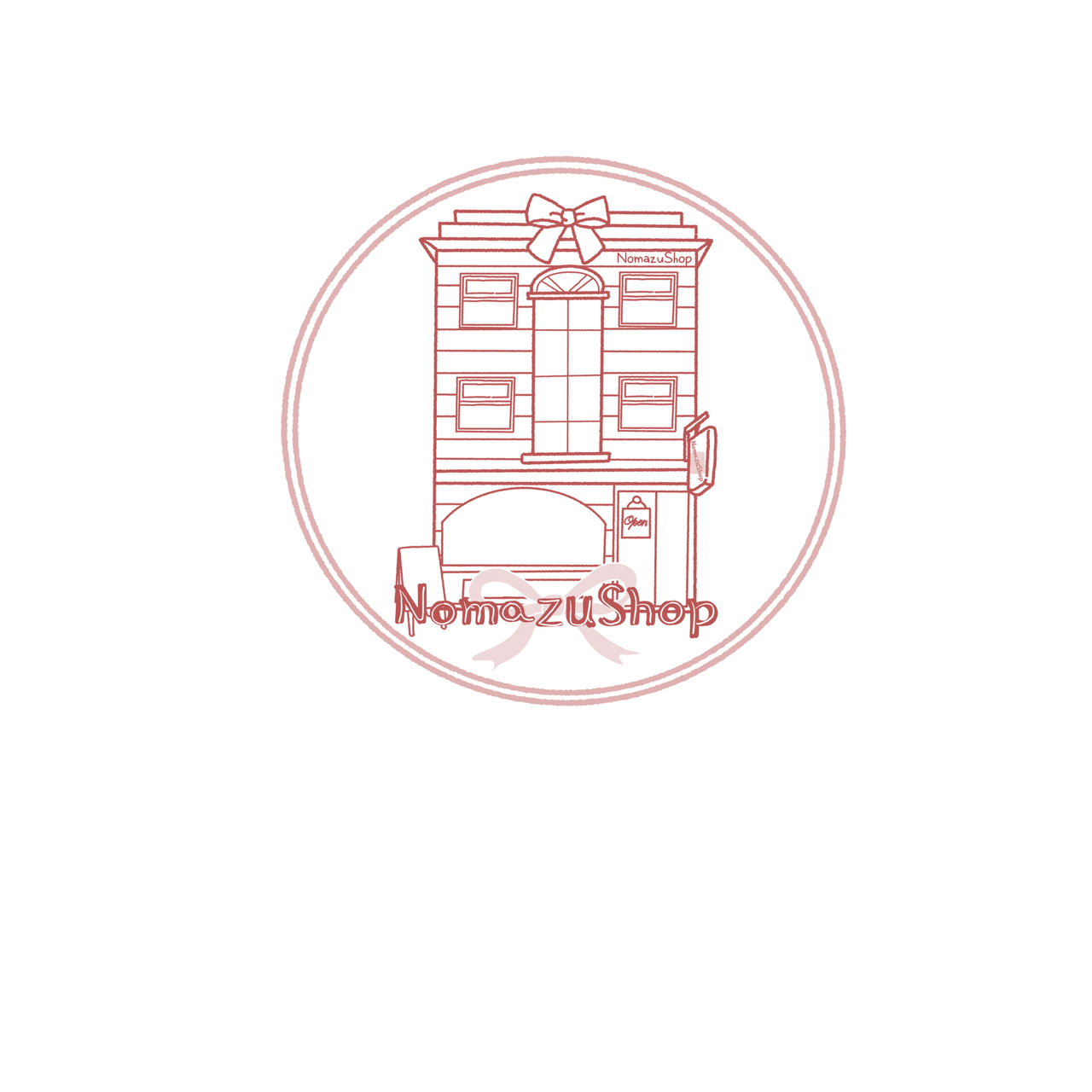 그래서 노마주 상점 이미지는 건물 위 포장 리본과 손잡이를 그렸어요.