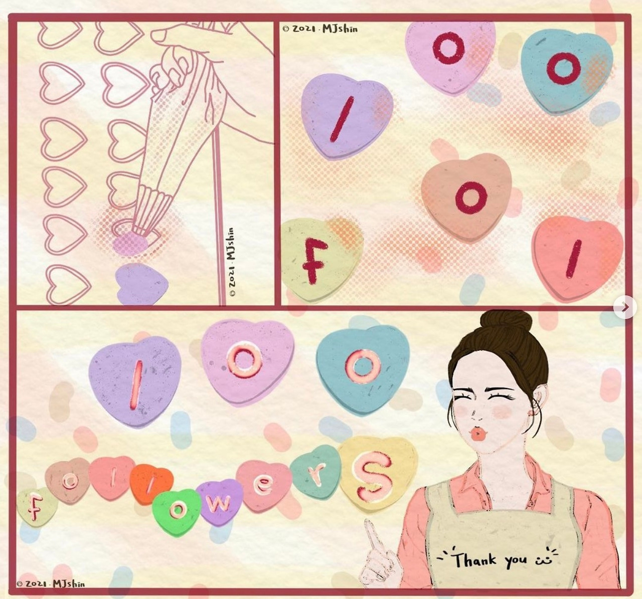 인스타그램의 그림 계정은 1월에 100명의 팔로워가 생겼다.