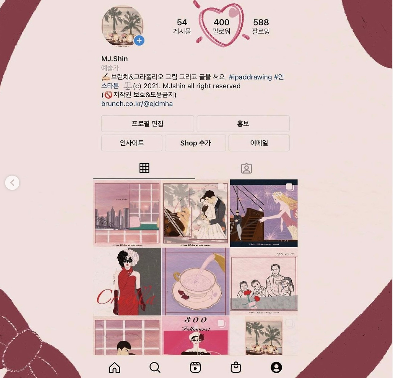 나의 상반기는 인스타그램 계정에 그림을 그려 자주 업로드하고 팔로워 수를 늘려갔다.