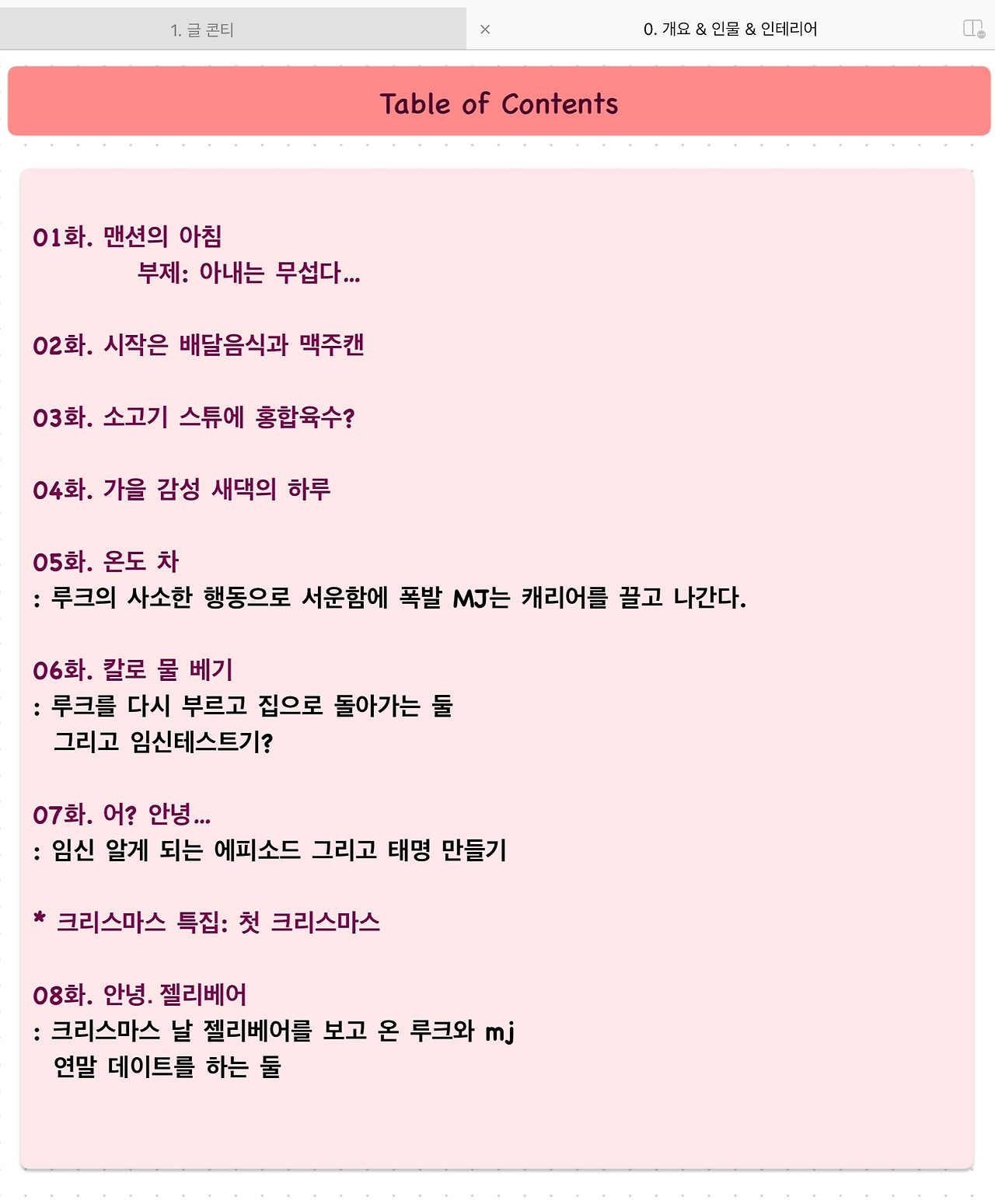 웹툰의 내용 구상 및 개요는 굿노트로 작성하고