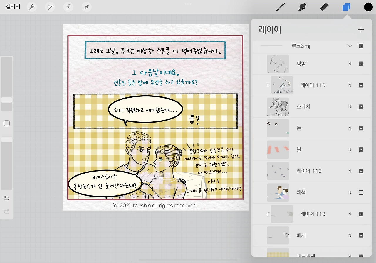 저는 다음과 같은 방식으로 웹툰/인스타툰을 만들었어요.
