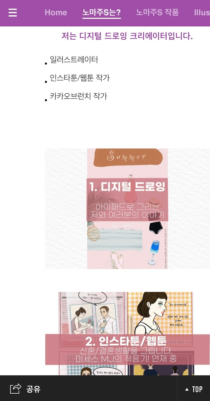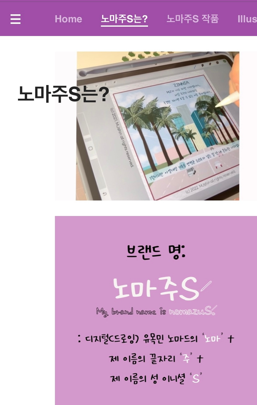 노마주S 디지털 그림 작가 홈페이지가 예시로 도움이 되었으면 한다. :)