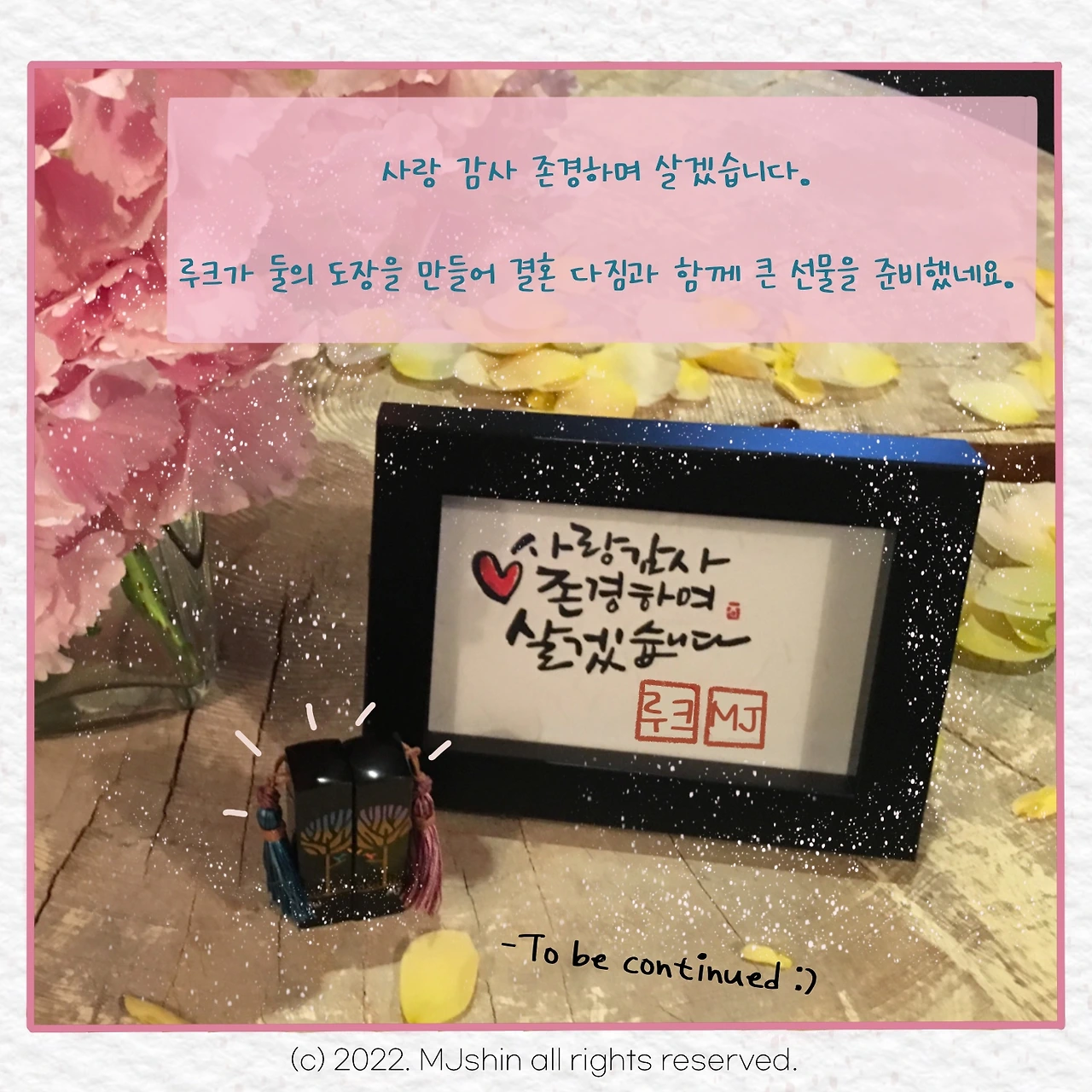 도장을 찍을 일이 거의 없지만 저희 부부의 중요한 계약을 할 때 이 도장을 사용하고 있어요. :)