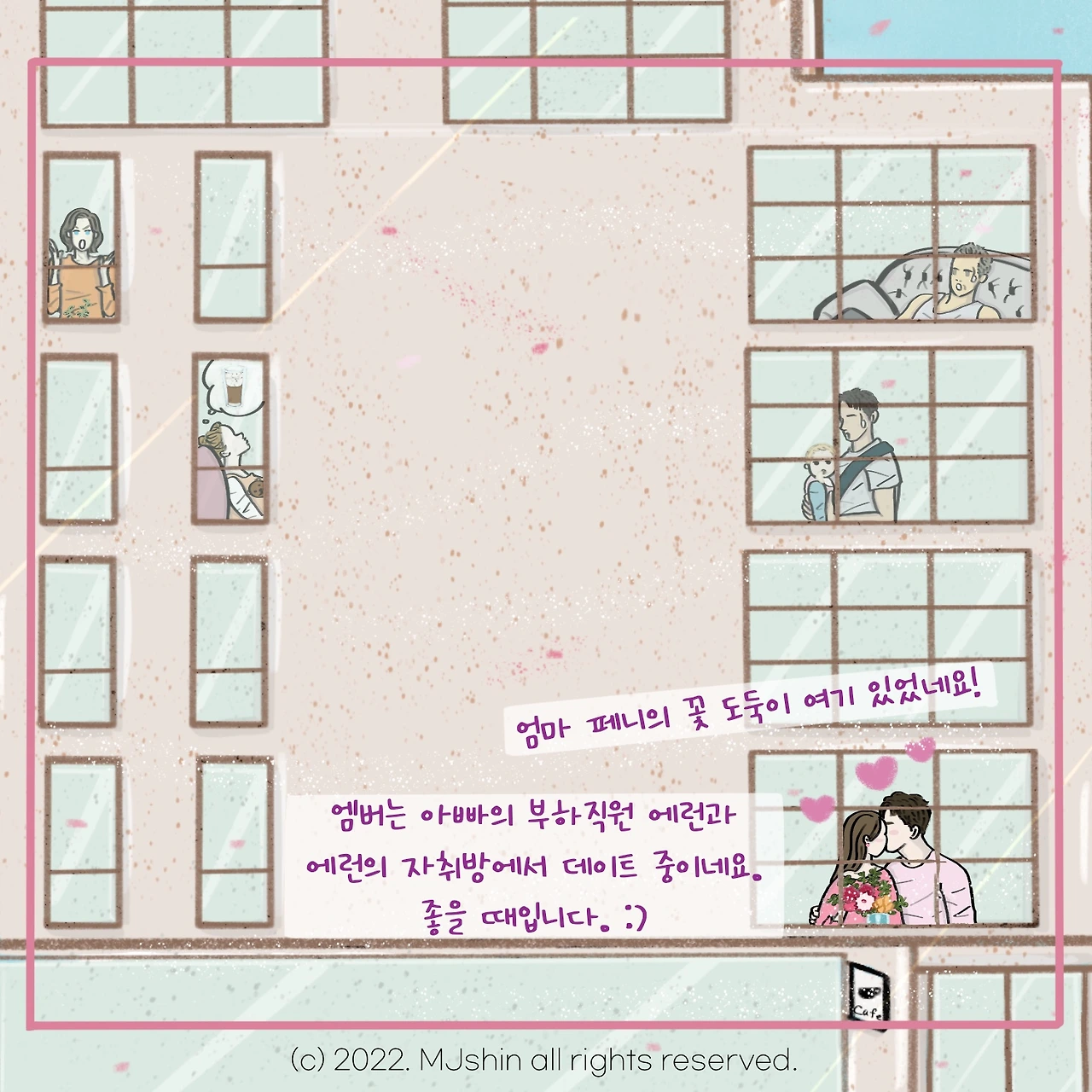 앞으로는 이야기를 확장하여 루크와 MJ 두 사람과 퀸시 맨션의 이웃들 이야기를 중심으로 그릴 예정입니다.