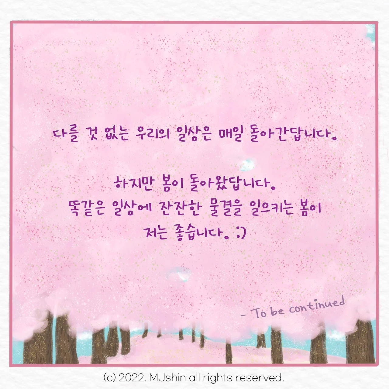 똑같은 일상에 잔잔한 물결을 일으키는 봄이 저는 좋습니다. :)