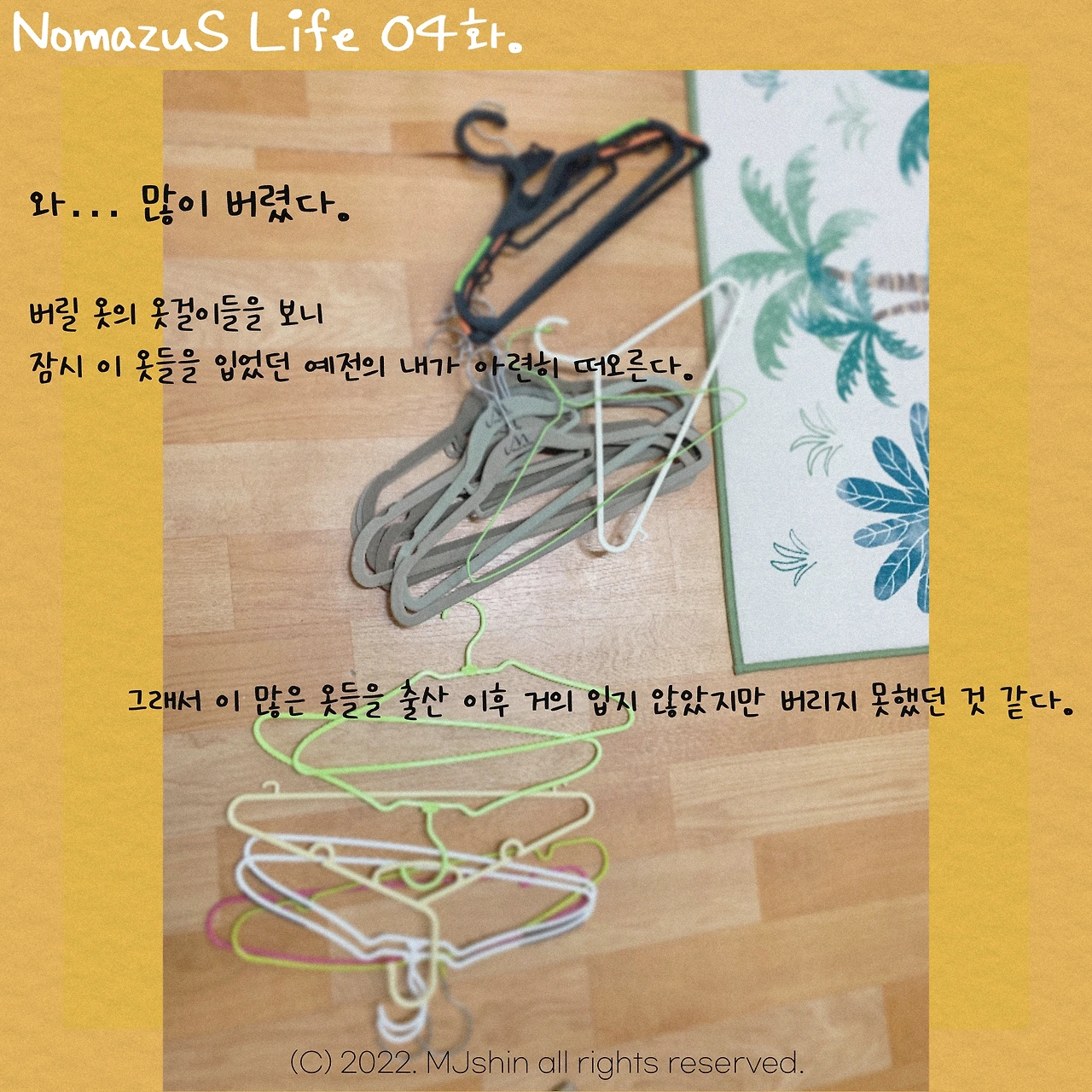 옷장에 괜히 옷걸이를 탓하며 꾸역꾸역 옷을 껴 넣을 때마다 짜증을 내지만 버릴 생각은 못했어요.