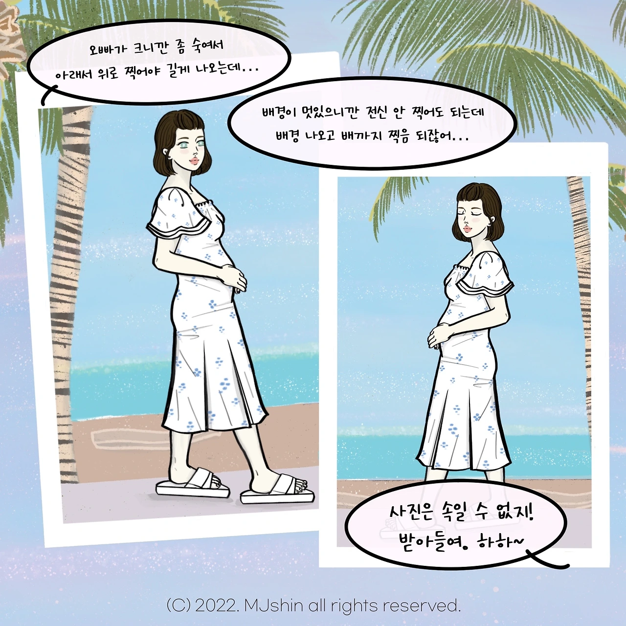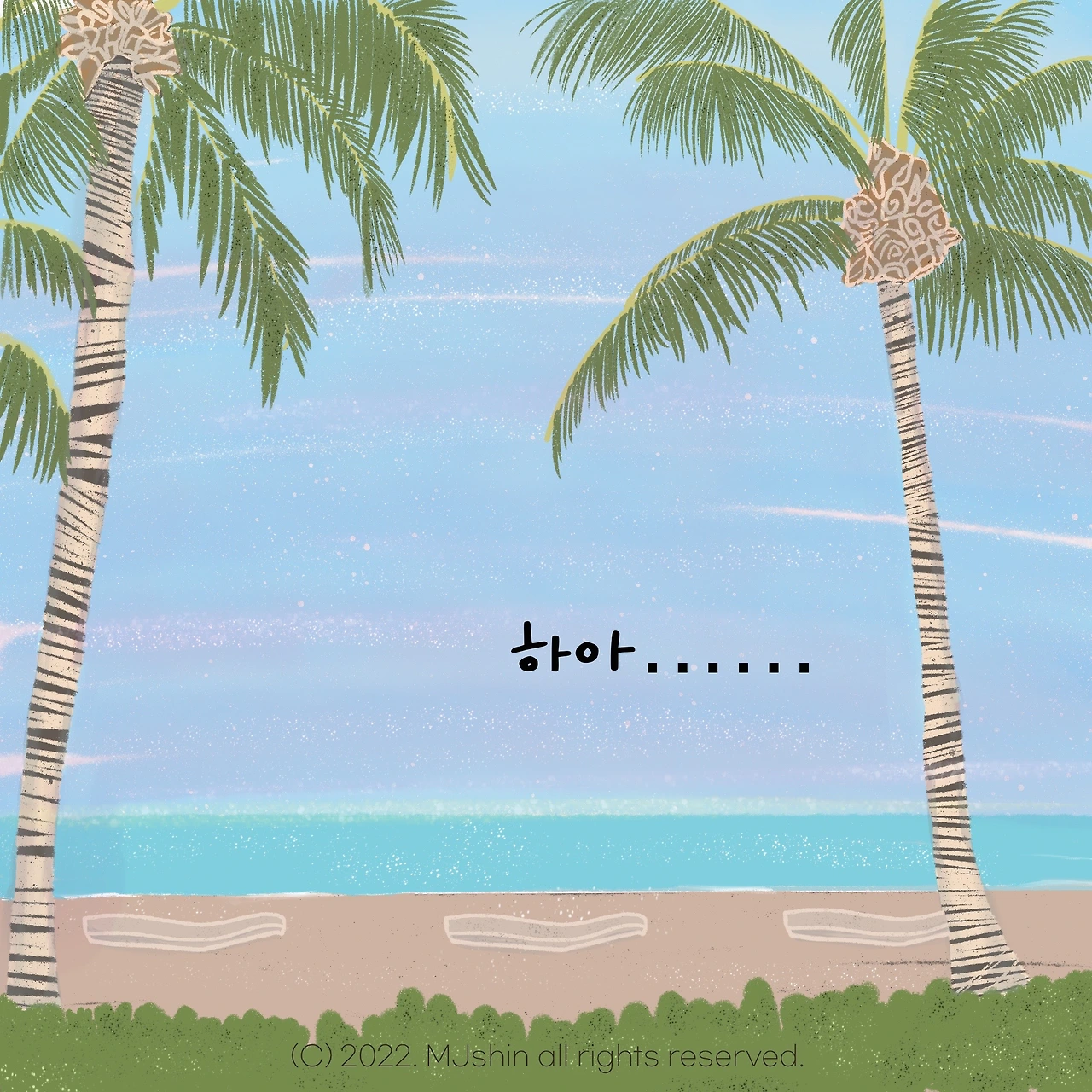 요즘 날씨가 습하고 너무 더워요. 그래서 이번 에피소드는 시원한 바다 배경으로 그려봤어요. :)