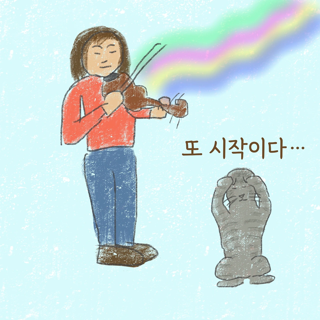 제주도에 다녀온 후-항우울제를 복용해는데도 불구하고-다시 우울증 증상이 심해져서 한동안 악기를 잡지 않았다. 다행히 함께 연주하는 다른 친구들은 국외에서 휴가를 즐기고 있었다. 친구들이 돌아온 후에 함께 연주를 해 보니 아무래도 그동안 연습을 쉰 티가 났다. 음악이란 정직한 법이다. 남들은 괜찮게 들린다고 해도 나 자신에게는 어설픈 부분과 실수가 뻔히 다 들린다. 다행히 항우울제 처방을 바꾸고 나자 다시 악기를 잡을 기운이 나기 시작했다. '잘해야지'라는 부담스러운 생각이 아닌 '재미있게 해야지'라는 생각으로 매일 조금씩이라도 깽깽 대며 소리를 만들 수 있게 되었다.