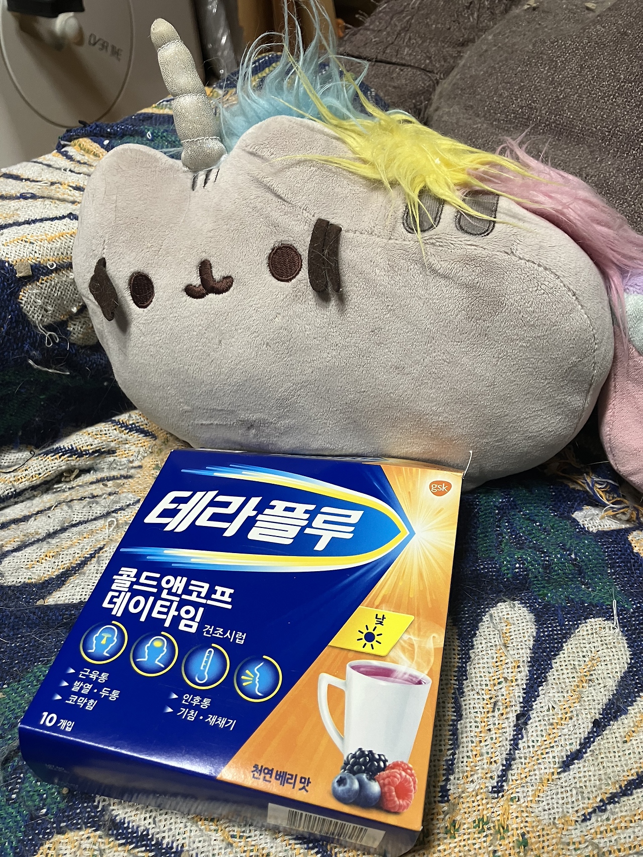 저녁 무렵이 되어서야 문득 생각이 났다. '아, 감기약!' 심지어 집에는 따뜻한 물에 타 마시는 테라플루 감기약과 예전에 직구한 알약 감기약이 충분히 있었다. 아, 나는 지금까지 무엇을 했단 말인가? (나 이대로 이 세상에서 살아남을 수 있을까?) 다행히 약을 먹은 보람이 있었는지 기침이 조금은 잦아들었다. 이대로 가면 내일은 조금 더 양호한 하루를 보낼 수 있을 것 같았다.