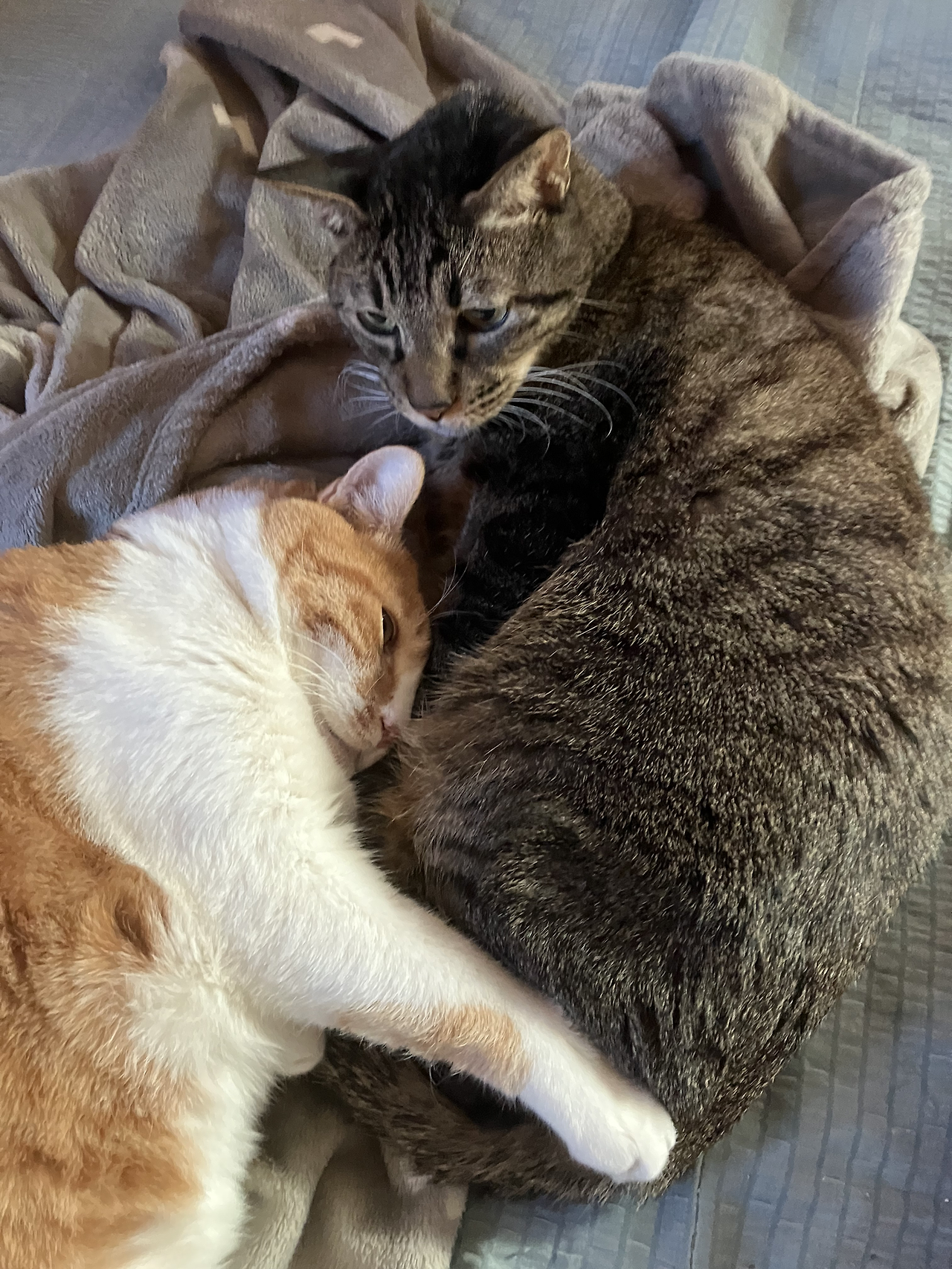 우리 집 고양이 형제. 핏줄은 달라도 영혼의 혈연을 맺었나 보다. 2번이도 멀리 고양이별에서 바라보고 있을 거야.
