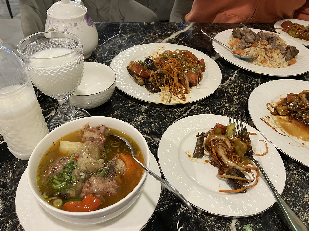 이런저런 대화를 나누던 중 D의 어머니 손이 미끄러져 손에 들고 있던 찻잔이 우렁찬 소리를 내며 바닥에 떨어져 깨졌다. 수면 부족으로 반 좀비 상태였던 D와 나도 정신이 번쩍 들 정도로 큰 소리였다. 흥미롭게도 이곳에는 빗자루를 들고 부리나케 달려오는 종업원은 없었다. 계산할 때 D의 어머니가 사과하자 사람 좋아 보이는 우즈벡 사장님은 방긋 웃으며 계산서에 찻잔값 5천 원을 추가했다. 부디 우리가 나온 후에 바닥에 남아 있던 자잘한 도자기 조각을 깨끗하게 치웠기를...
