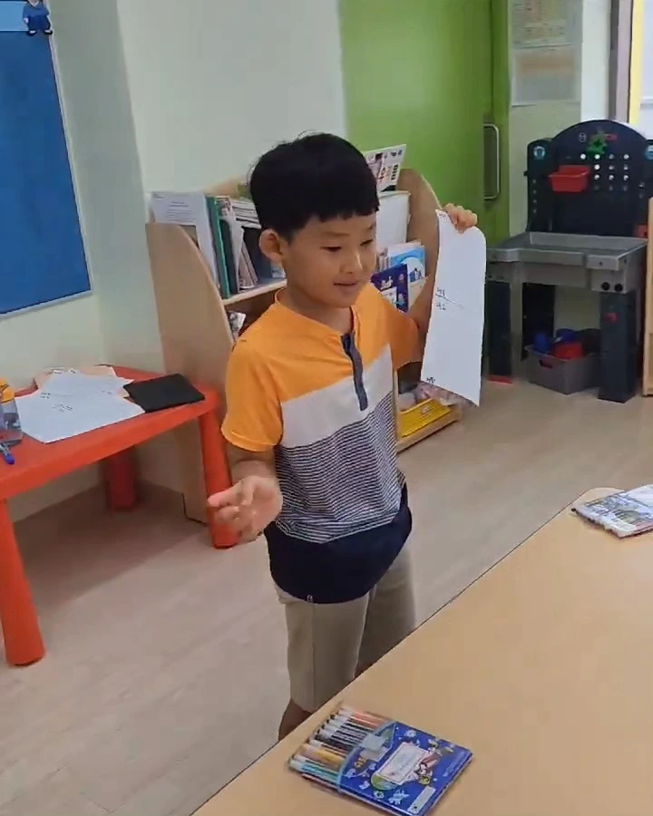 "엄마랑 창의수업하는 게 제일 재밌어요! 유치원에서 하던 창의수업이랑 다르긴 한데 그래도 엄청 재밌어요."