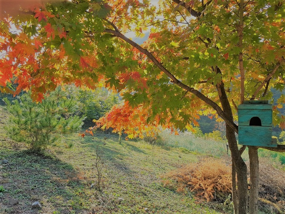 그동안 쇠약해진 몸을 챙기기 위해 '산골짜기 둥지'를 찾았다. 작은 집 옆에 있는 단풍나무. 그리고 매달아 놓은 둥지 하나. 낡은 둥지는 꼭 나와 비슷한 신세처럼 보였다. 초봄에 낡은 둥지를 보수하려고 했는데 시일이 지나서 하지 못했다. 둥지가 낡아서 일까 새들이 보금자리를 틀지 않은 것 같다. 조용하다.