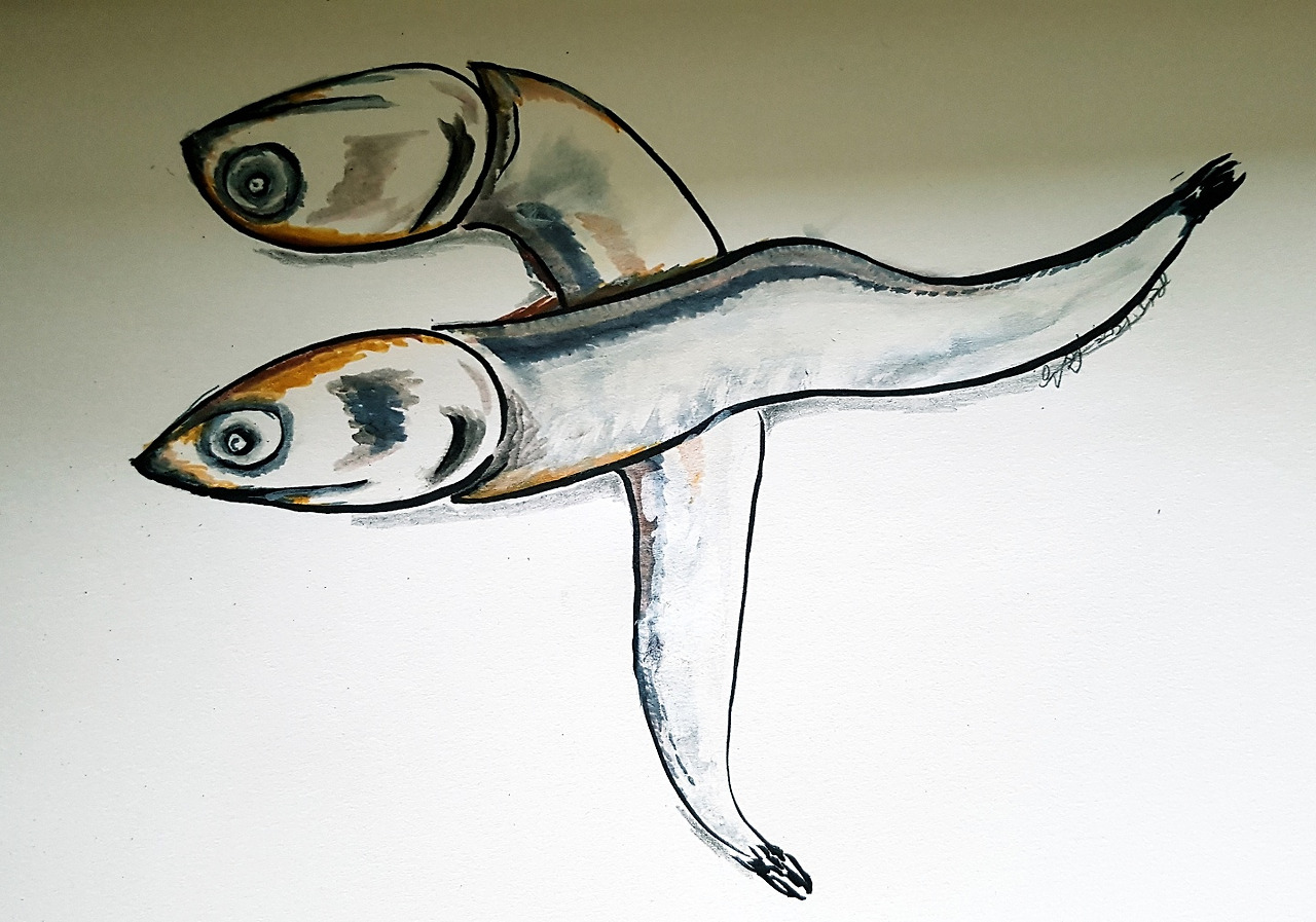 잔치국수의 육수 국물은 역시 멸치. 멸치의 배에서 검은 똥을 빼낸다. 멸치 비율에 비해 큰 눈과 입. 어딘가를 쳐다보고 있는 검은 눈, 자기보다 더 큰 것을 먹었을 것 같은 쩍 벌어진 세모진 입. 바다를 헤엄쳤던 멸치는 이제 냄비 속에서 가자미처럼 누워 있다. 냄비 안에서 멸치, 고추, 양파, 무, 다시마 물이 부풀어 오른다. 푸푸. 수면 위로 반쯤 잘린 물방울 풍선.