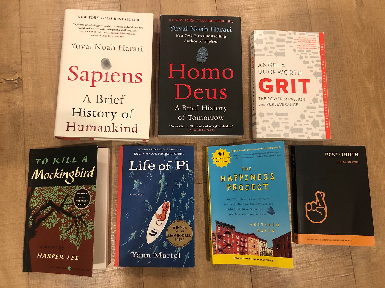 < Grit > 을 시작으로 우리는 매일 책을 읽었고, 2019년 3월. 놀랍게도 지금 우리는 7번째 원서 책을 읽고 있다. 책 한 권을 끝날 때마다 느끼는 뿌듯함과 감격은 이루 말할 수 없다. 멤버들과의 끈끈해진 단결력과 동지애는 무엇보다 소중하다. 혼자라면 절대 읽지 못했을 <사피엔스>와 같은 두꺼운 책도 같이 읽고, 저자의 매력에 빠져 <호모 데우스>까지 함께 읽어갔다. 이렇게 매일 달리면, 3-4주 정도면 한 권이 끝나 있다. 아래는 지금까지 우리가 읽은 책의 리스트다. 놀라운 경험이 아닐 수 없다.