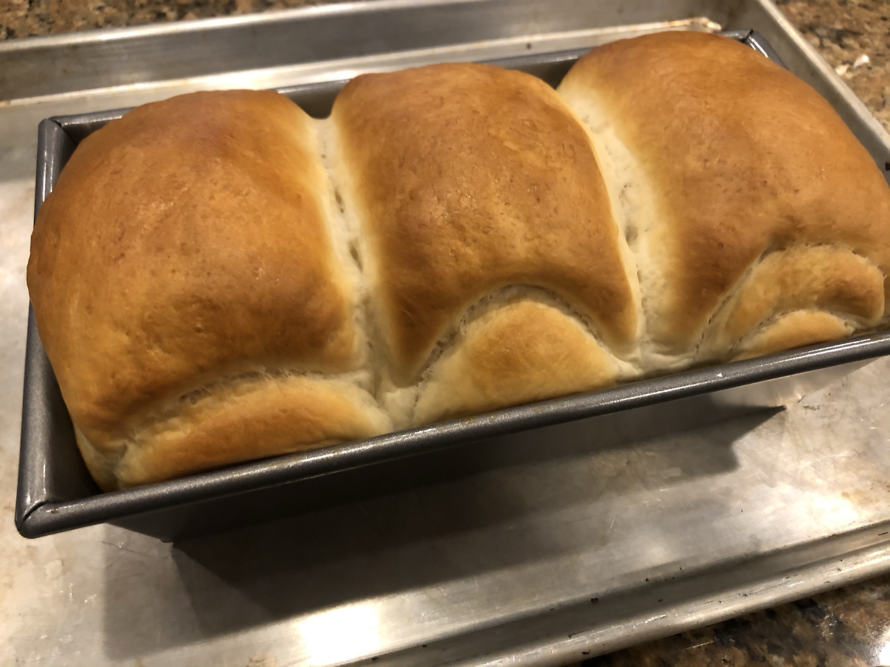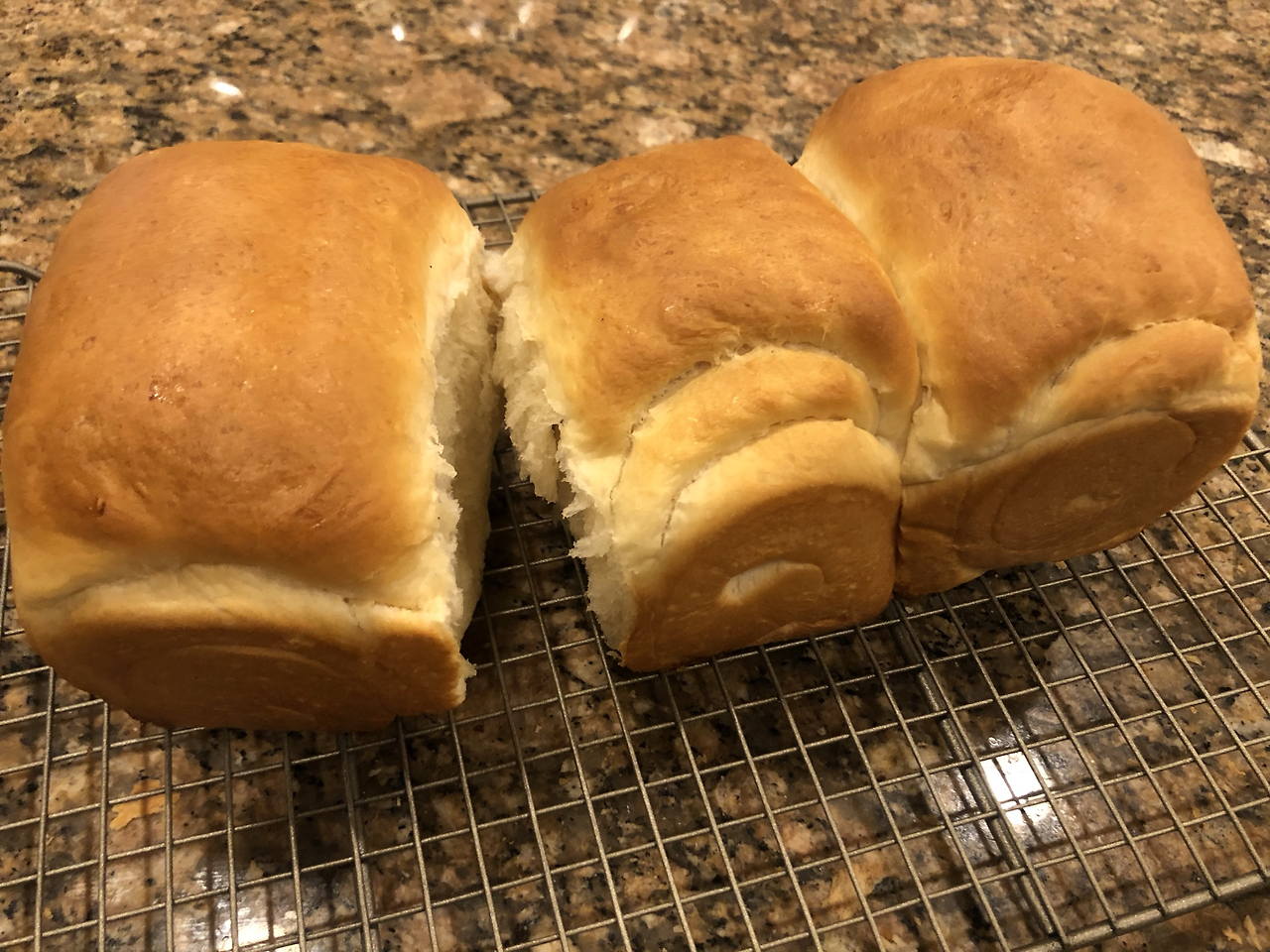 밀폐된 공간에 따뜻한 물을 함께 넣어 발효시키면 잘 부푼다고 했다. 이스트 종류도 바로 부풀 수 있는 인스턴트 드라이 이스트(Instant Dry Yeast)를 권장했다. 이번에는 꼭 해내고 말리라! 다시 떨리는 맘으로 살짝 뚜껑을 열어보니, 오오! 이번에는 아주 이쁘게 잘 부풀어 있다. 우여곡절 끝에, 첫 식빵이 먹음직스럽게 나왔다. 고소한 냄새가 집안 가득 퍼졌다. 부들부들한 식빵을 쭉쭉 찢어 먹는 재미와 쫄깃한 맛은, 갓 나온 빵이 주는 선물일 것이다.