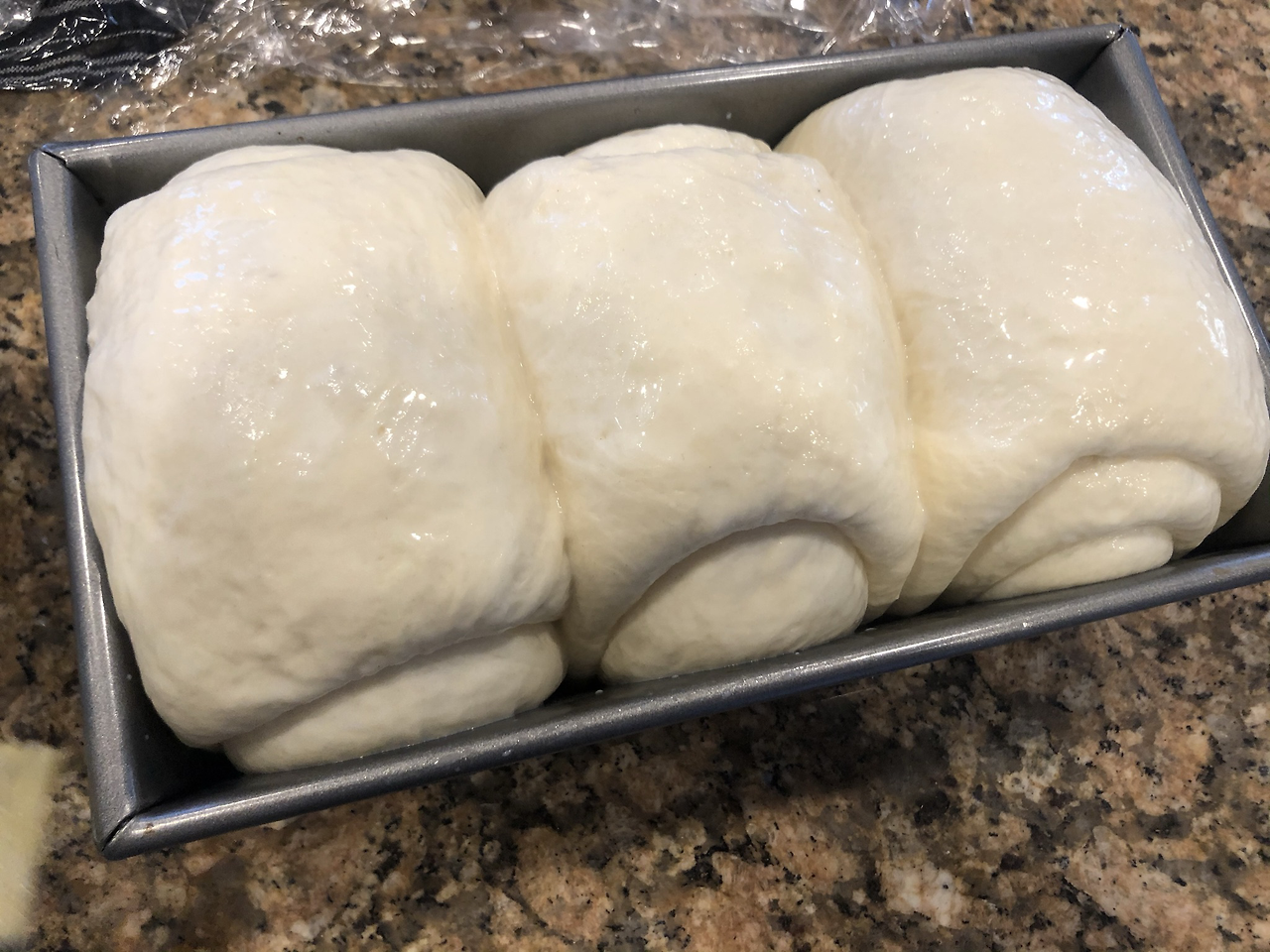 조회수도 높고 성공했다는 댓글도 많았다. 이걸로 다시 도전해보자! 반죽을 덜하는 대신, 이스트가 부푸는 과정을 여러 단계 거치는 방식이었다. 그대로 따라 해 보니, 반죽이 그럴싸하게 뭉치며 탱글한 모양이 나온다. 여기까지는 잘 된 것 같다. 다음은 반죽을 발효시키는 단계다. 잘 숙성된 반죽은 이스트(Yeast)의 마법으로 약 2배 정도 풍성하게 부풀어 오른다. 큰 기대를 하고 열어보니, 이런! 생각보다 덜 부풀어 올라 있었다.
