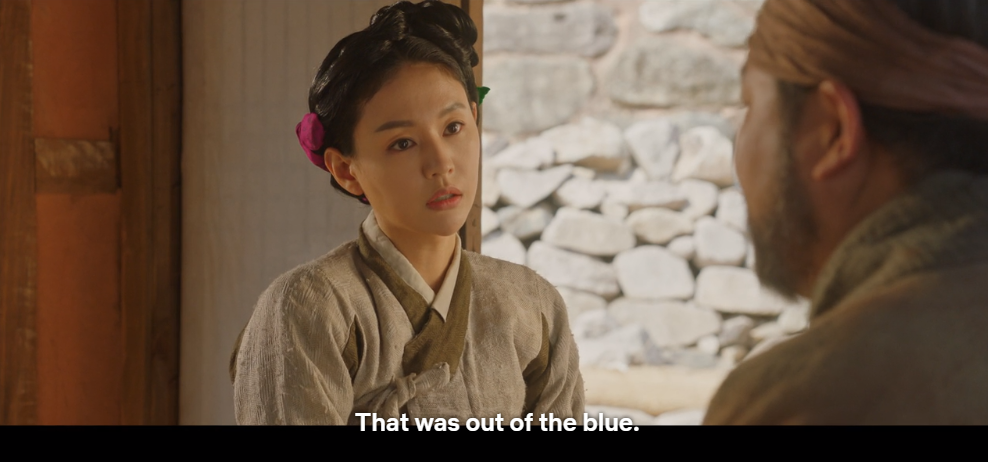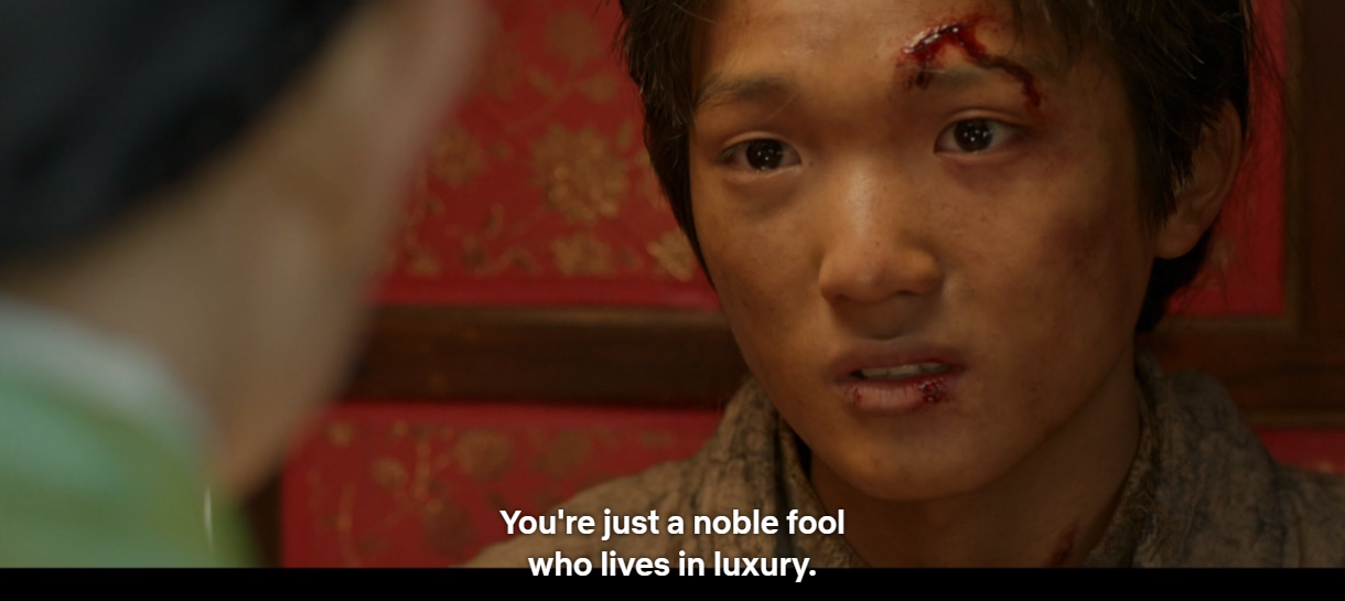 구동매와 고애신의 어린 시절 첫 만남을 그려낸 강렬한 장면. 쫓기는 아이를 가마(palanquin)에 태워 구해준 대가로 듣기엔 거친 말이다. 하지만, 자신이 바꿀 수 없는 신분제에 대한 억울함을 하소연하는 말일지도 모르겠다.