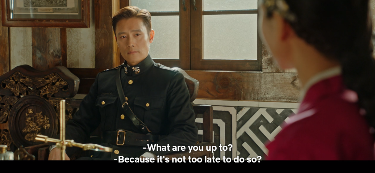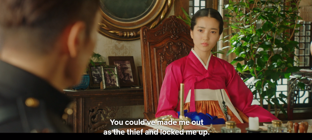 고애신: 내내 궁금했소. 나를 진범으로 몰아 잡아넣었으면 됐을 것을... 왜 이제야 이러는 것이오. 진짜 속내가 뭐요?