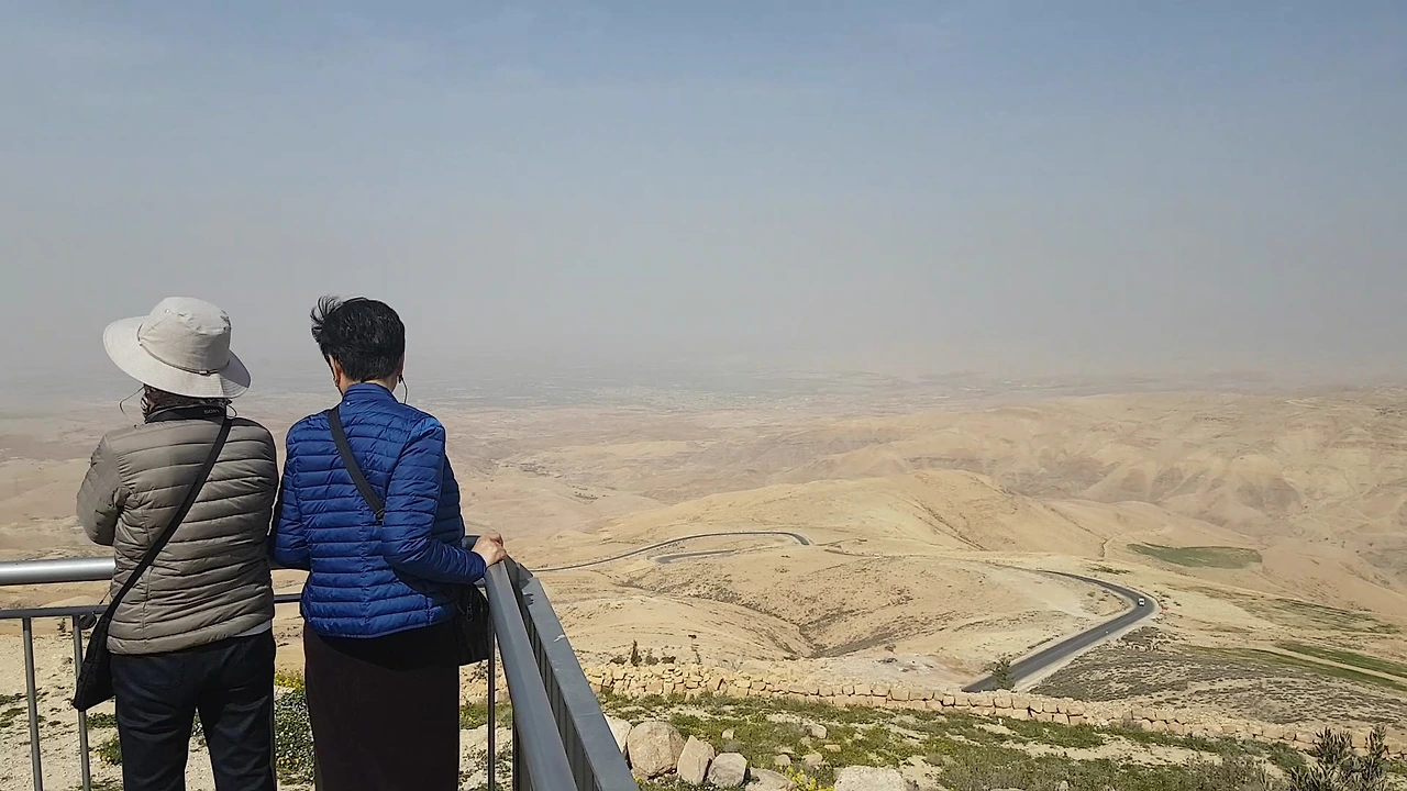 하지만 언제나 그랬듯이 해냈고, 2019년 2월 26일 도하를 거쳐 요르단의 수도 암만에 도착했다. 밤 비행기를 타고 와서 아침에 바로 일정을 시작하는 것은 손님들이나 인솔자에게나 힘든 일이다. 정신을 똑바로 차리고 느보산으로 향했다. 모세가 이스라엘 백성들을 이끌고 이집트를 탈출해서 광야를 헤맨 지 40년 만에 이 산에 도착해서 저 멀리 가나안 땅을 바라보며 숨을 거뒀다는 바로 그곳이다.