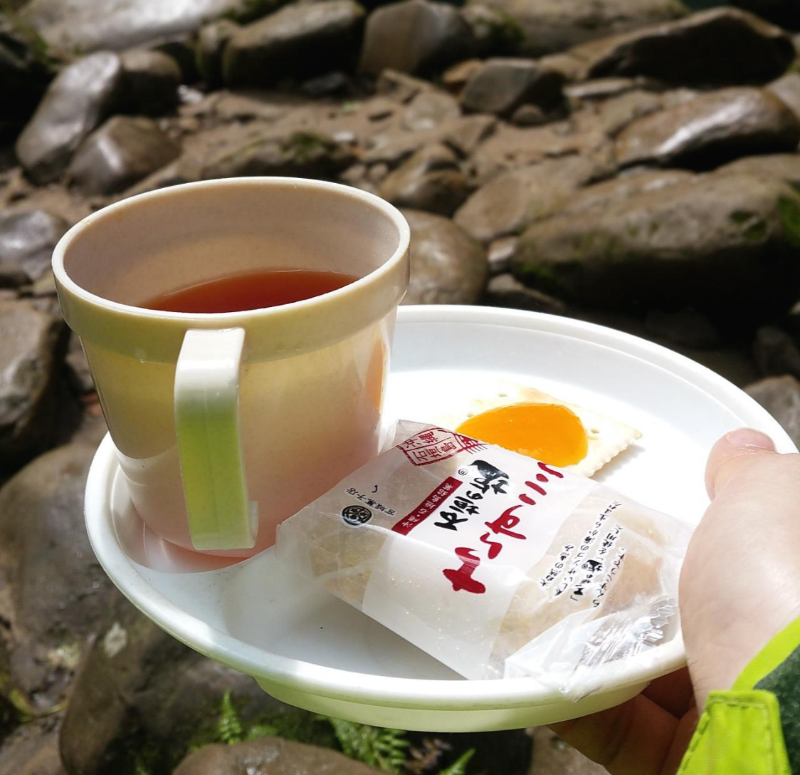산에서 내려와 가진 휴식시간, 이번에도 배낭 속에서 버너와 코펠을 꺼내더니 물을 끓이기 시작했다. 소박한 작은 접시에 과자까지 담아서 차와 함께 정갈하게 나누어주는데 그 정성과 세심함이 감동적이었다. 물론 상황은 다르지만 미얀마 일출 때 손님들을 위하여 준비했던 티타임 장면이 오버랩되면서 나도 접시에 간식까지 준비했어야 했나? 괜한 경쟁심이 발동되기도 했다. (우리는 일출이나 일몰 시 뜨거운 물 보온병에 커피, 차 등의 티백과 종이컵을 준비하곤 한다).