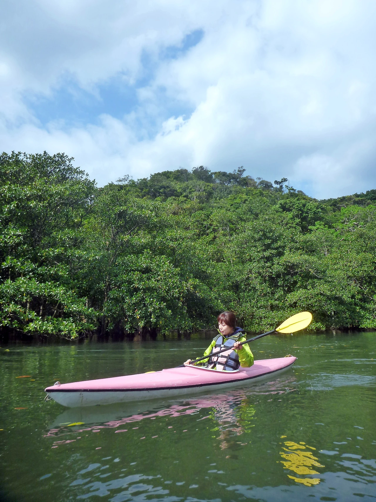 이리오모테 섬의 대표적인 액티비티, 맹그로브 투어에 참여하게 되었다. 구성원은 일본인 부녀와 우리 부부 그리고 스텝 2명이었다. 자기 덩치만 한 커다란 배낭을 메고 앞으로 갔다가 뒤로 갔다가 바삐 움직이며 꼼꼼하게 설명을 해주는 것은 물론 중간중간 사진까지 찍어주는 가이드 켄, 여행 후에 사진 CD까지 만들어 준다는 이야기에 빙그레 웃음이 났다.