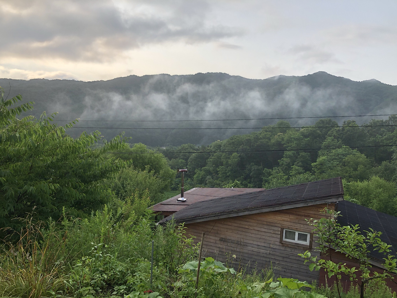 막상 아침이 되니 저절로 눈이 떠졌다. 낯선 곳에서 긴장을 한 탓도 있을 것이다. 무엇보다 아침 해가 창 안으로 환하게 들어오고 새가 짖어대는 통에 계속 잘 수가 없었다. 밤의 적막을 깨고 울려 퍼지는 새 울음소리는 천연 알람이었다. 산 새소리에 잠에서 깨어나다니. 졸린 눈으로 창밖으로 바라보니 뿌연 물안개가 산등성이를 따라 흩어지고 있었다.