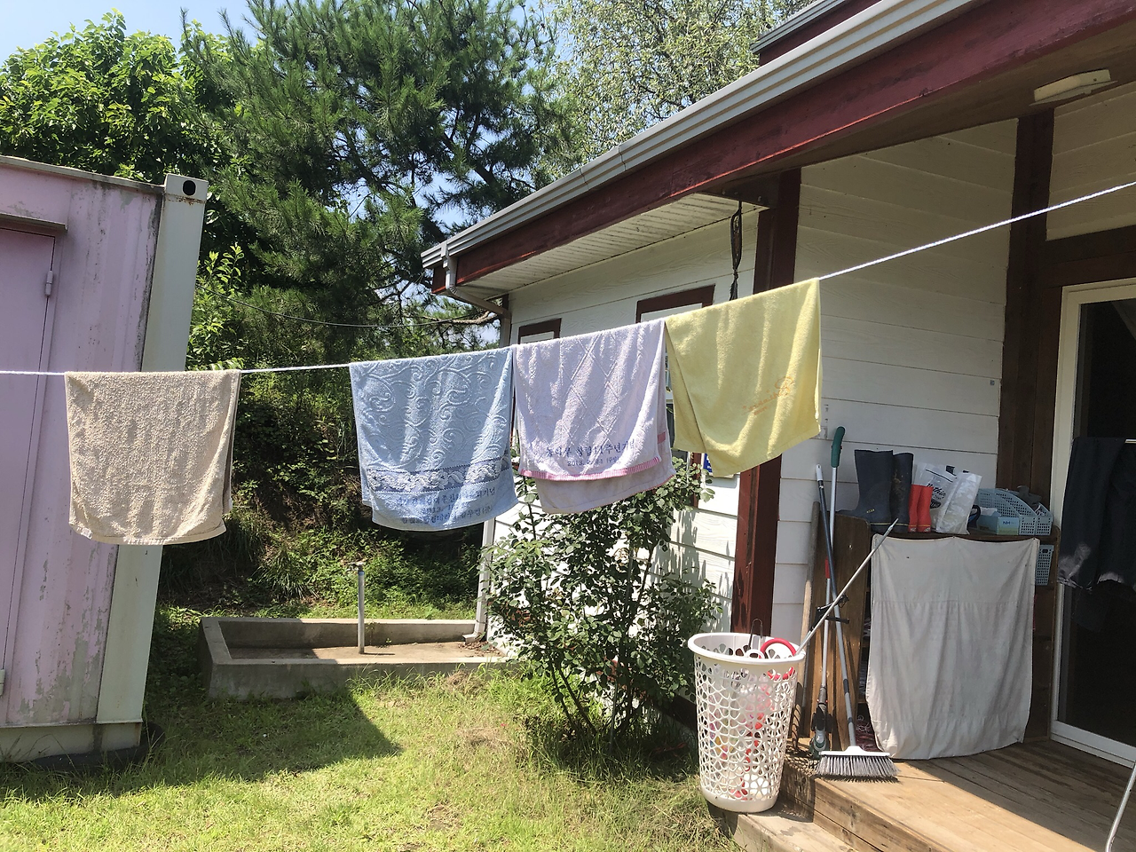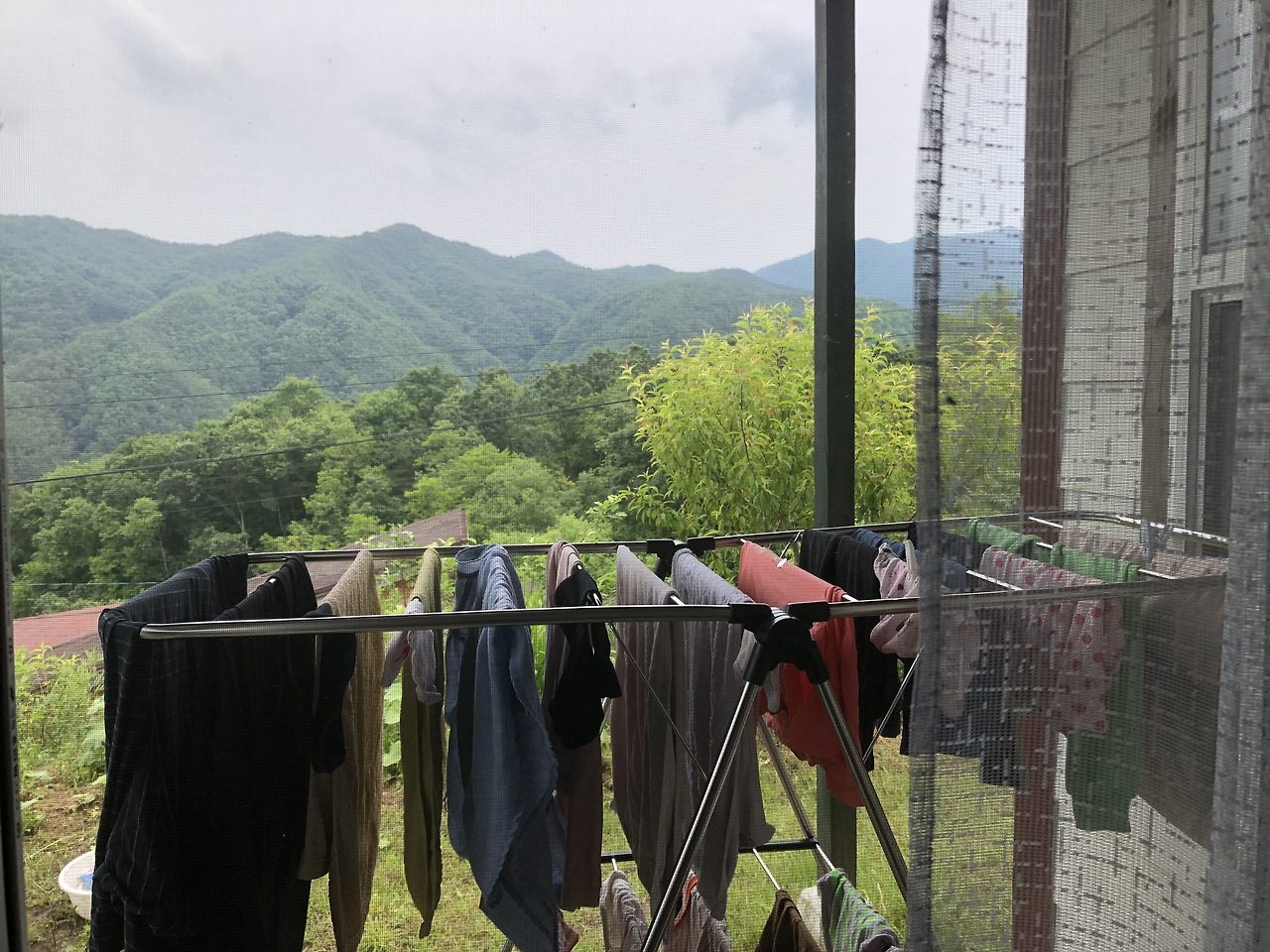 마당에 나와 한껏 큰 동작으로 젖은 옷을 털어서 건조대에 빨래를 널어 보았다. 빨랫줄에도 빨래를 널었다. 이층 테라스 난간에는 이불을 널어서 햇볕을 쪼였다. 산의 청량한 공기와 쨍한 햇살이 빨래를 뽀송뽀송하게 말려 주었다. 내 마음의 습기까지 가져가 버릴 정도로 바삭바삭하게 빨래가 말랐다.