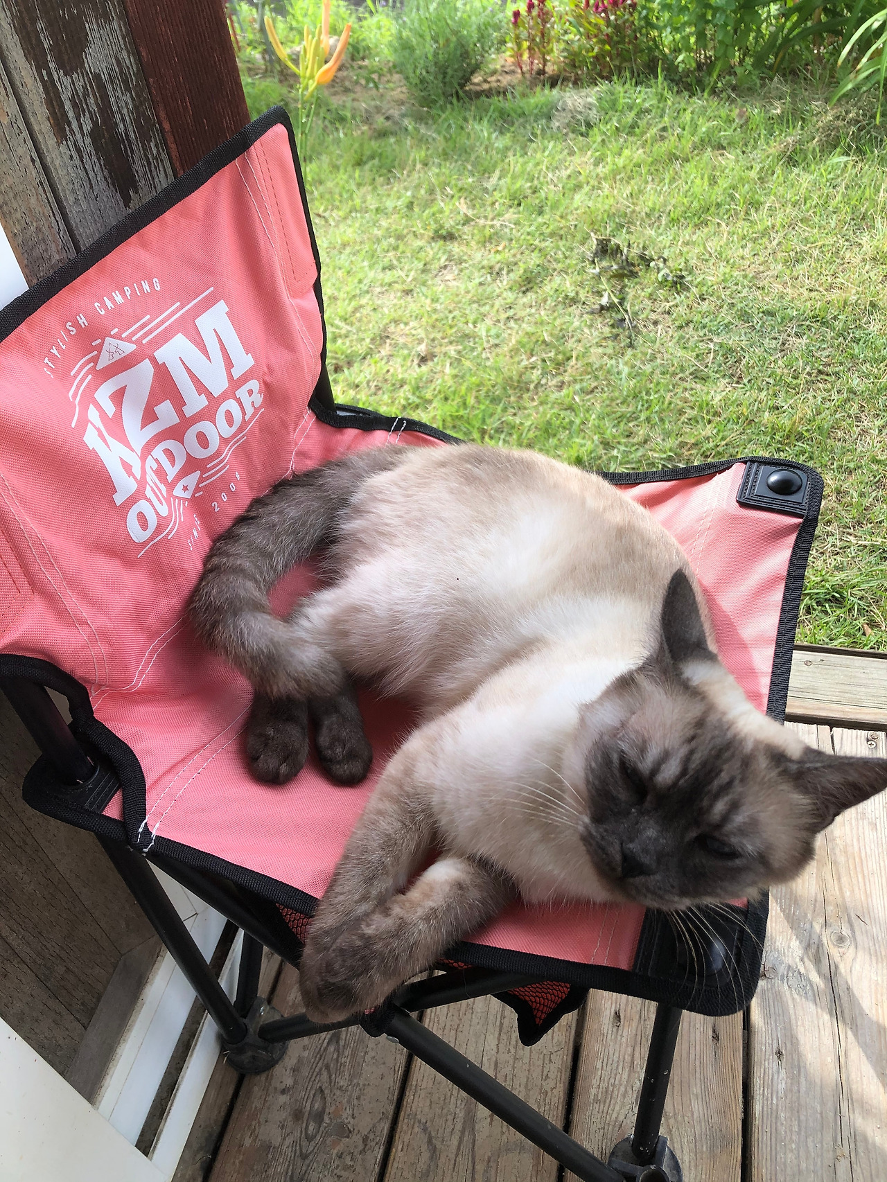 마당에 캠핑 의자를 펴 놓으면 어느샌가 자리를 차지하고 앉아 있는 옆집 고양이. 고양이를 옆으로 내려놓고 의자에 앉아 있으려고 하면, 손을 머리로 건드리며 자기를 쓰다듬으라고 한다. 조금 쓰다듬어주면, 궁둥이를 들이민다. 그러면 등 아래쪽을 톡톡톡 두드려줘야 한다. 내가 자기 마사지사인 줄 아는지도.