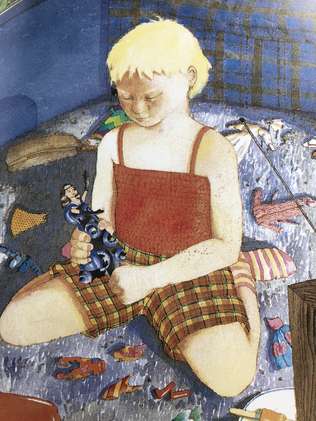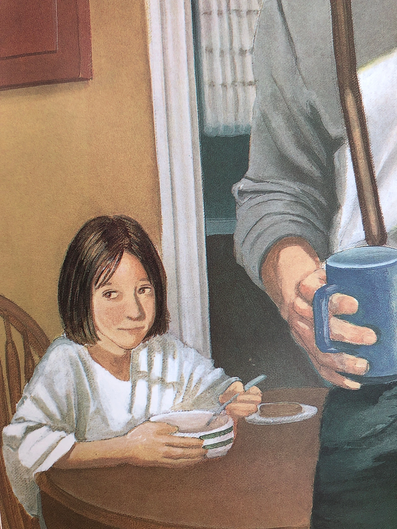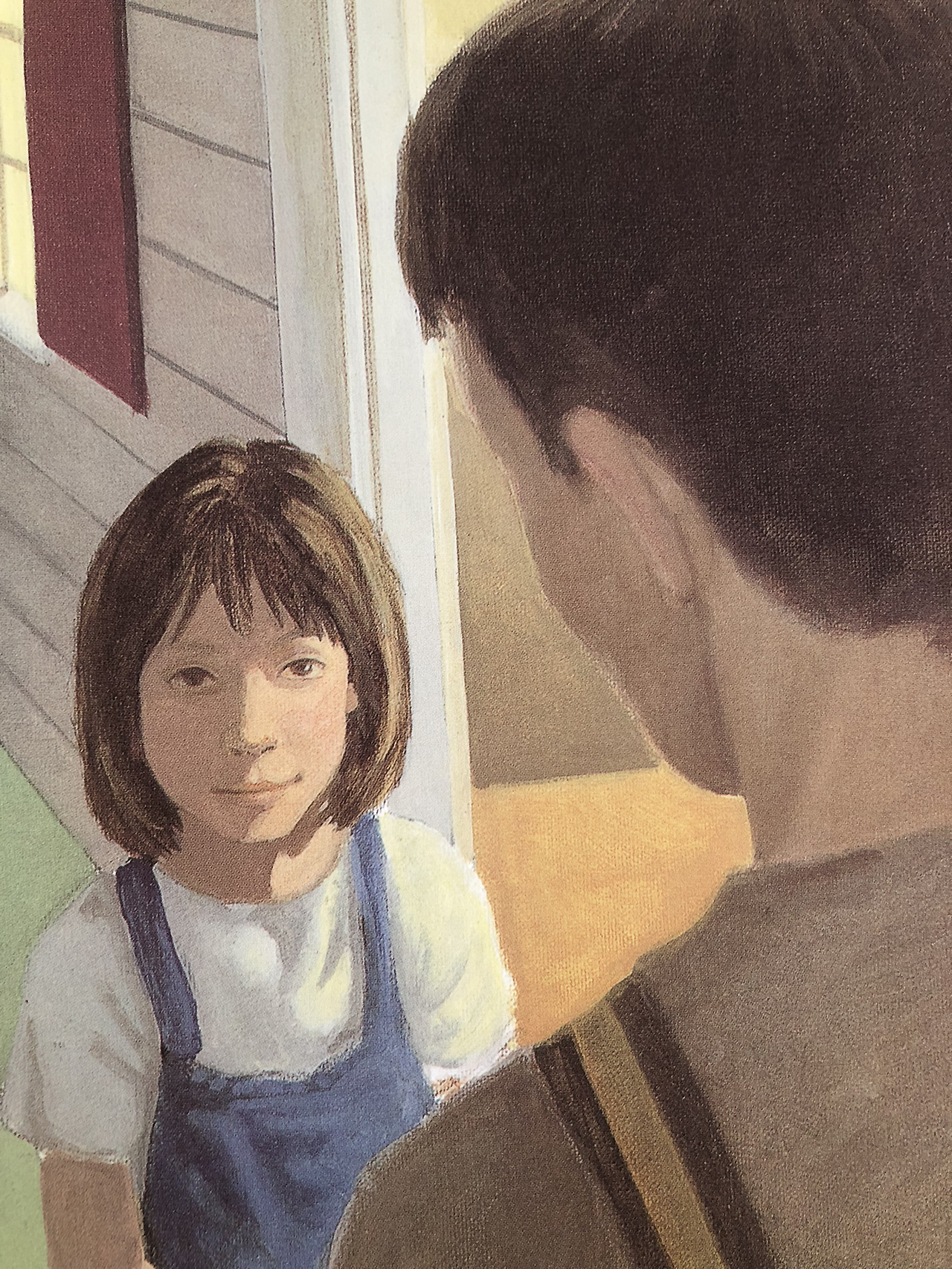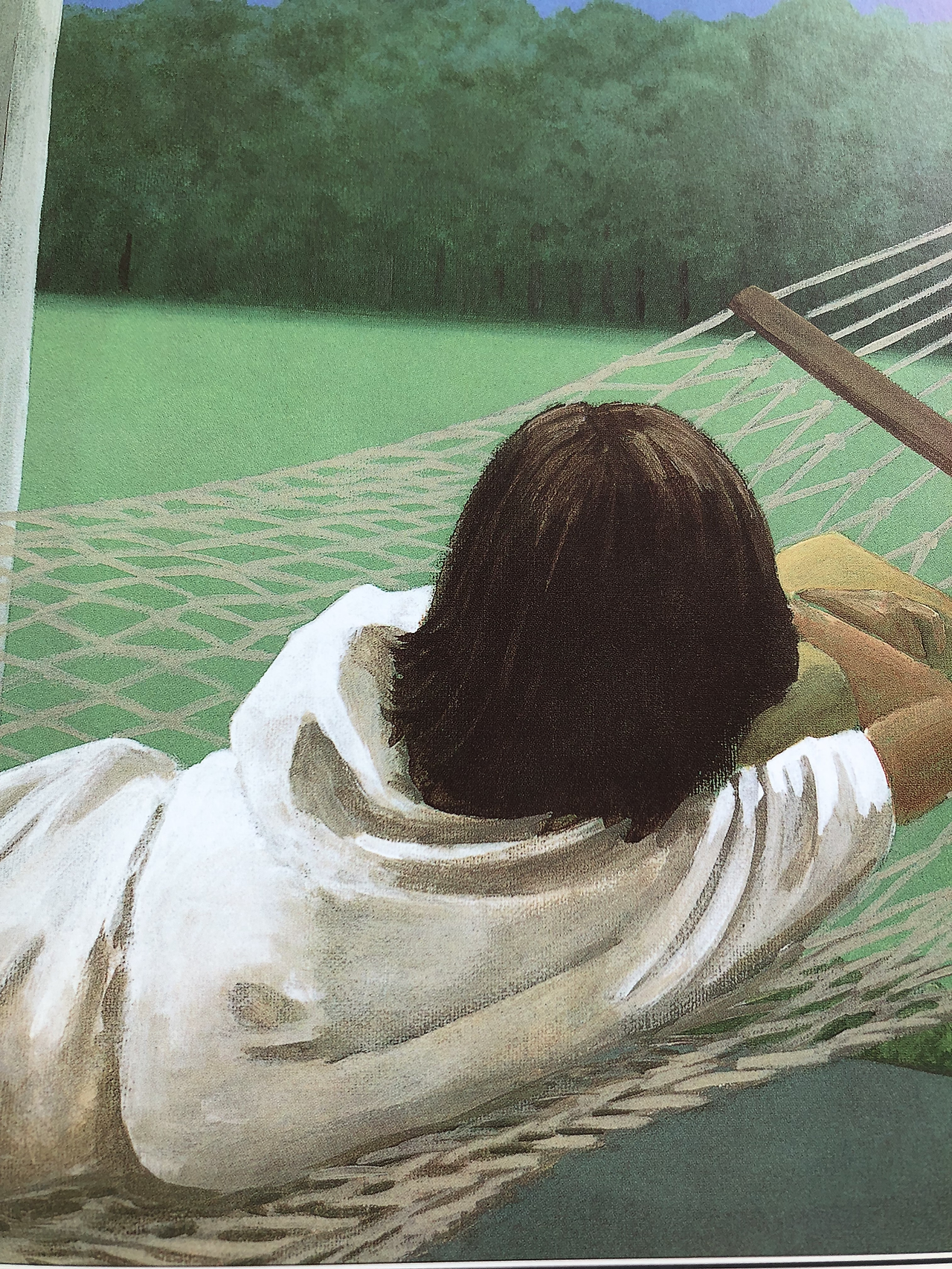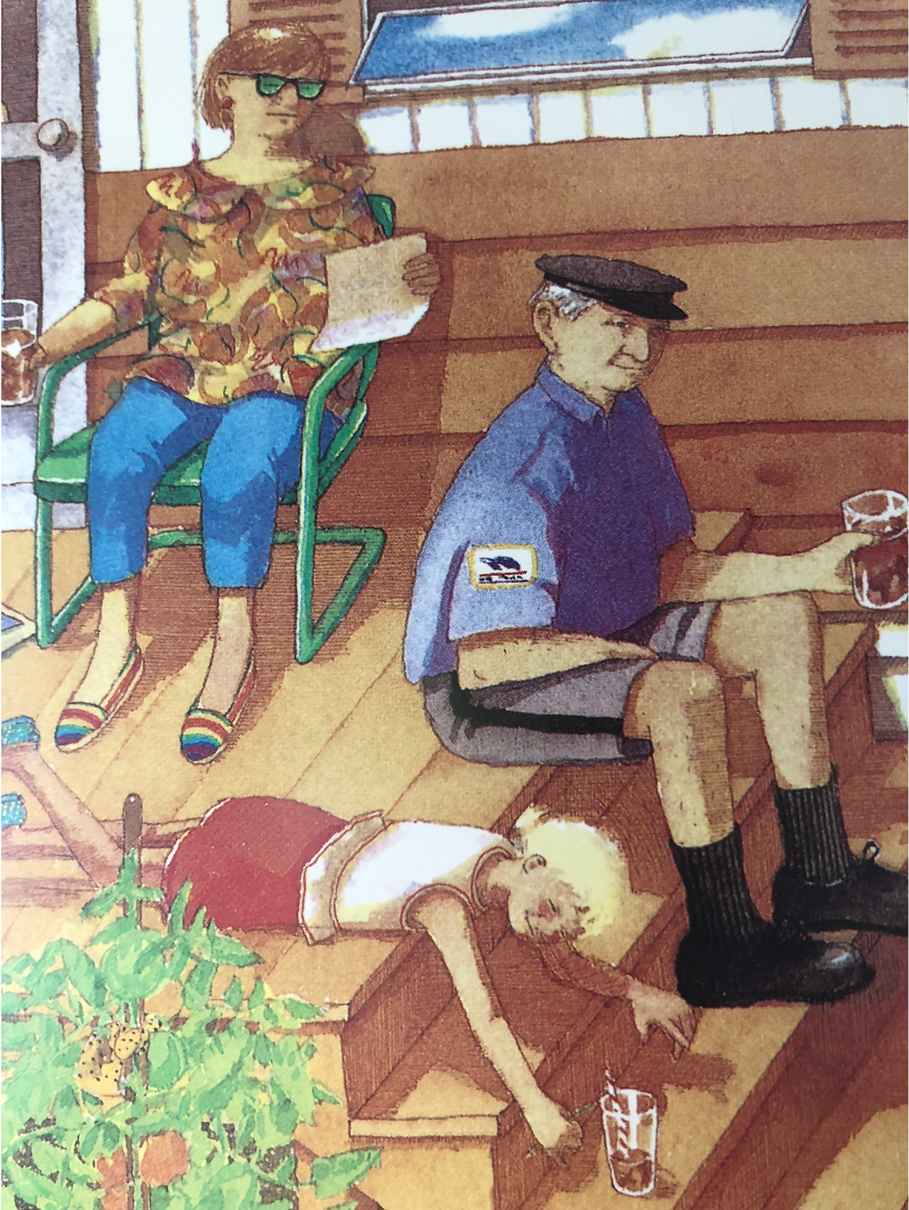 아빠는 낮 시간 동안 잔디밭을 꾸미는 일에 열중하며 시간을 보낸다. 아이는 혼자 방에 있거나, 홀로 그물침대에 나와 바깥을 바라보며 시간을 보낸다.