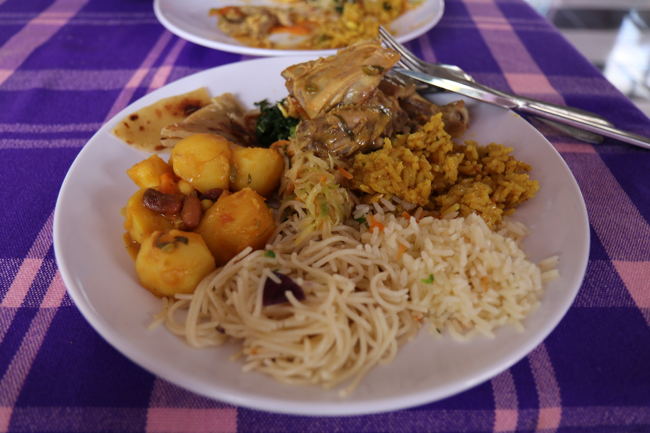 아침과 저녁은 이 곳 식당에서 먹게 되고, 점심은 식당 혹은 도시락을 먹게 된다. 이게 케냐 현지식인지는 잘 모르겠으나, 고기류와 함께 스파게티와 밥이 주어진다.