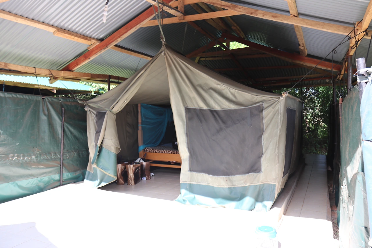 마사이 마라를 가게 되면 2박을 이 숙소에서 지내게 된다. 슬레이트 천장과 넓은 텐트와 함께 그 안에는 침대 2개가 있다. 놀라운 점은 이 안에 샤워시설까지 갖춰져 있다는 것이다. 또한 옆에는 식당이 있는데 여기서 카메라나 휴대폰을 충전할 수 있다.