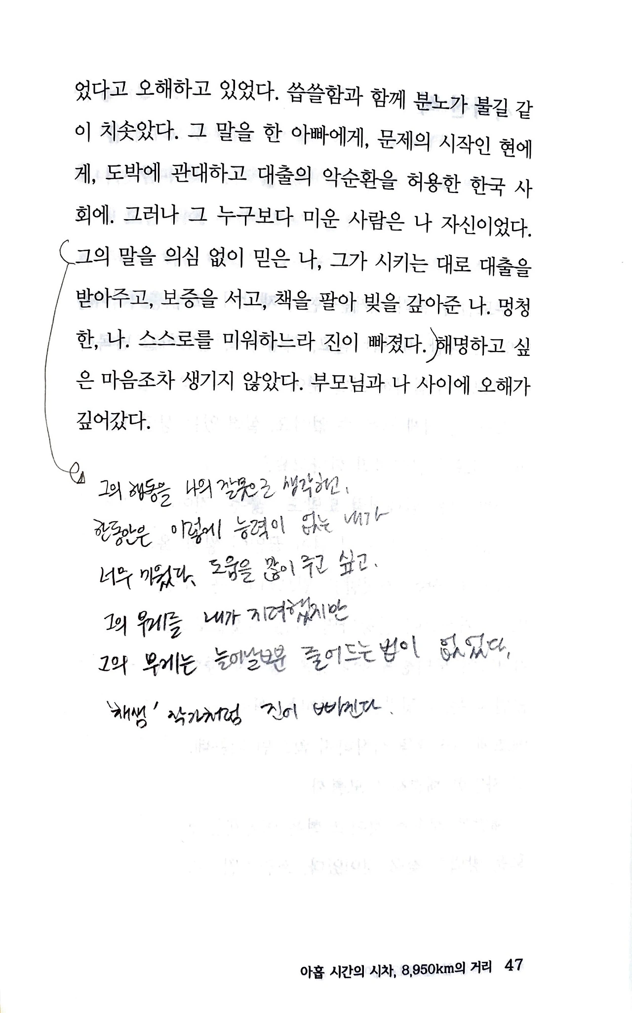 나의 삶은 점점 사라지고 있었습니다. 평범하게 지내던 일상의 대화들도 대출, 상환, 이자 등의 단어들이 차지해 버리고 감정적인 싸움만을