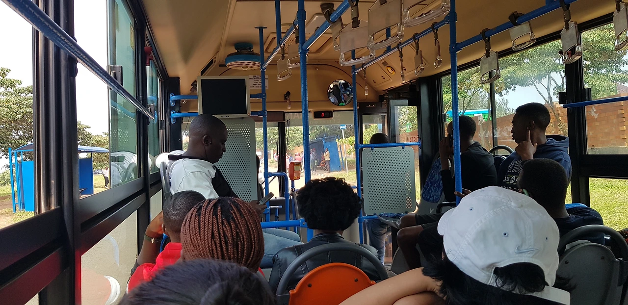 우리나라 버스같이 넓고 쾌적한 차가 정류장에 대기하고 있었다. 르완다도 버스카드를 사서 충전해서 사용하는 시스템이었다. 운전기사 옆에 달리 단말기에 태그 하며 버스에 올라타니 그야말로 격세지감의 감정이 몰려왔다. 지난 6년 전에 왔을 때에는 버스운전 보조자가 요금을 일일이 받고 거슬러주는 시스템이었으니 말이다. 버스의 출발지여서 그랬는지 배차 시간은 일정치 않고 사람이 어느 정도 차야 떠나는 모양새다. 좌석에 앉아서 20여분을 기다리니 그제야 출발을 한다. 목적지까지는 몇 정거장을 지나야 당도하는지 정확하게는 몰랐지만 점점 사람들로 가득 차서 복도 쪽이 아우성이다. 무중구 4명이 쪼르륵 앉아있는 모습을 보고는 ‘돈도 많은 외국인이 왜 이렇게 복닥거리는 버스를 탔을까 하는 눈빛으로 우리를 쳐다본다. 시내에 다다르니 모두 일시에 내렸기 망정이지 목적지가 시내중심부가 아니었다면 중간에 내리지도 못했을 뻔했다.