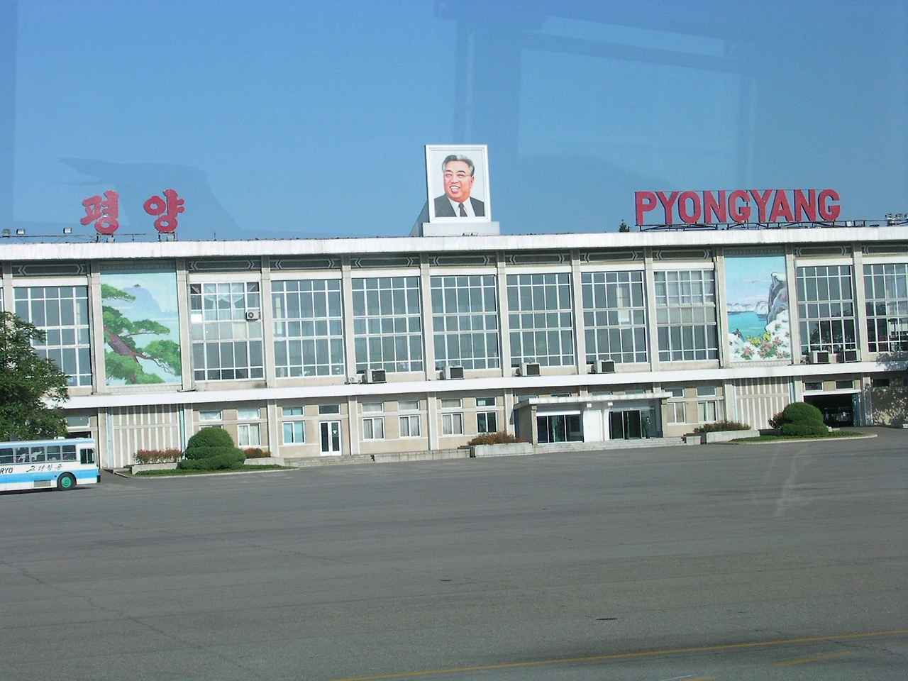 모두의 얼굴에는 약간 상기된 표정이 역력했고, 여러 번 오고 갔던 담당자만이 덤덤하게 행동했습니다. 기내에서 마주한 여승무원은 단아한 옷매무세와 미소로 “어서 오십시오. 반갑습니다” 라며 특유의 씩씩함으로 우리를 환대해 주었습니다. 간식으로 내주는 음료와 곽밥을 받아서 먹는 사이에 비행기는 평양의 상공에 접근하고 있었습니다. 호기심 어린 눈으로 창가를 응시하며 조심스럽게 촬영을 시작했습니다. 촬영팀은 저 혼자였기 때문에 부지런히 몸을 움직여 상황을 포착해야만 했습니다. 이럴 때면 동영상에 집중하게 되어 스틸샷을 찍을 시간이 없음이 늘 아쉽습니다. 상황은 반복되지 않기 때문에 지나가면 놓치게 됩니다. 순안 공항에 비행기가 멈추자 한눈에 공항 건물과 중앙에 걸린 사진이 눈에 들어왔습니다.