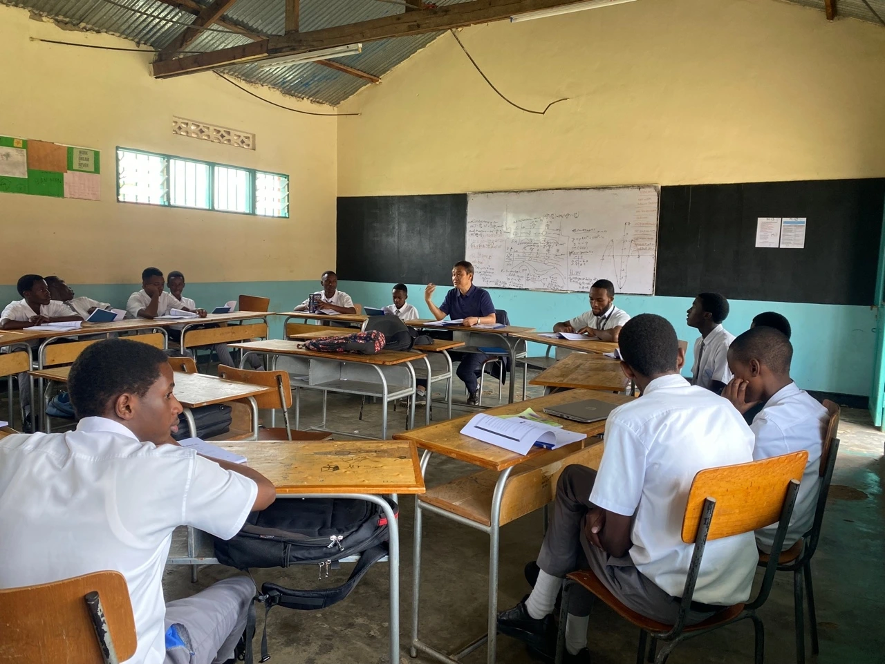 나 역시 12시에서 1시 사이의 점심이 익숙한 사람인데 2시 35분까지 버티는 것엔 무리가 따랐다. 그나마 교사들에게 나오는 현지식이 맛이나 영양면에서 만족스러운 것도 아니고 외국인인 우리에겐 그냥 때우는 수준이다. 수업분위기를 환기시킬 겸해서 야외 그늘로 나와서 둘러앉아 교과서 강독을 이어갔다.