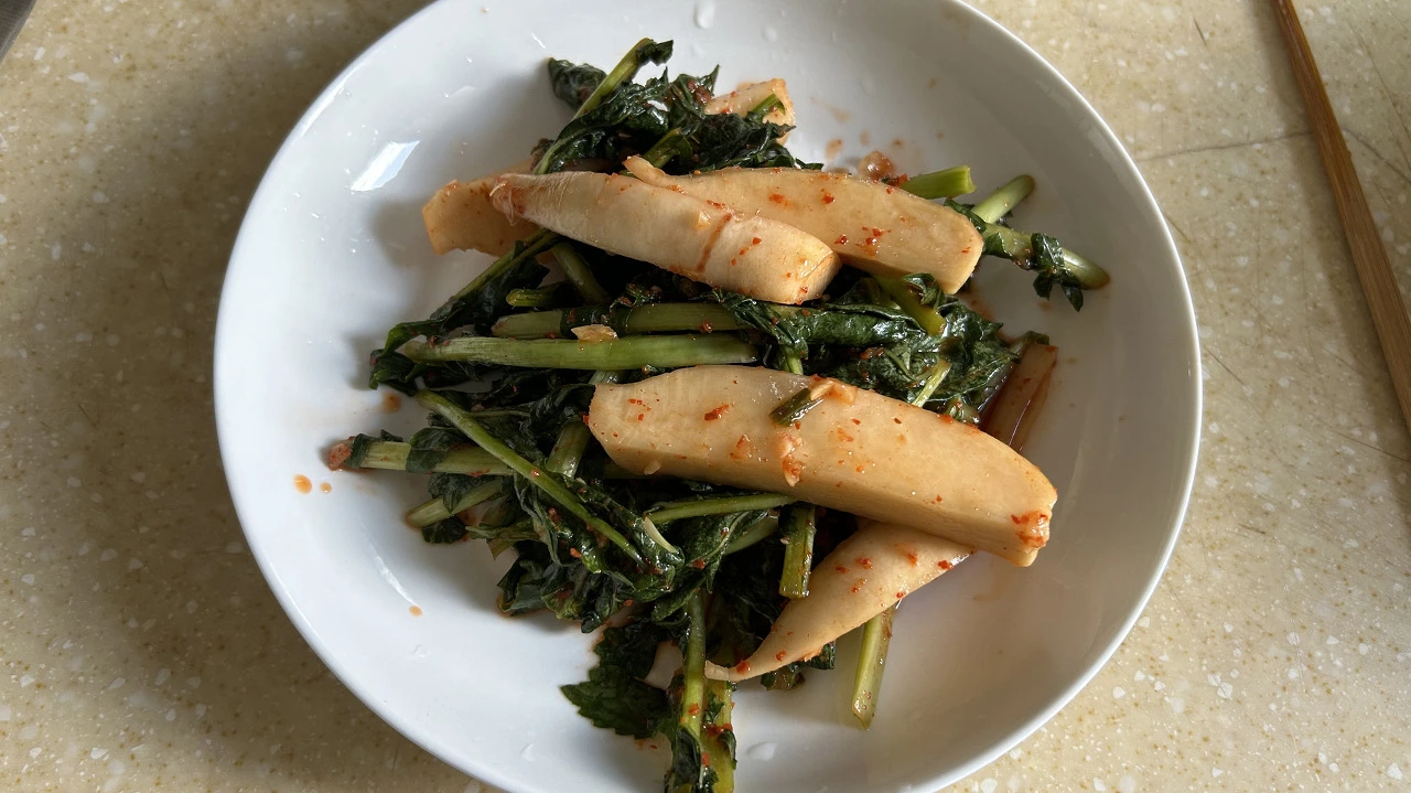 깍둑무에 소금을 뿌리고 고춧가루와 마늘 파 액젓을 넣고 버무려서 하루쯤 밖에서 익히니 불그스름한 빛깔도 잘 배어 제법 집에서 맛보던 깍두기 맛이 났다.