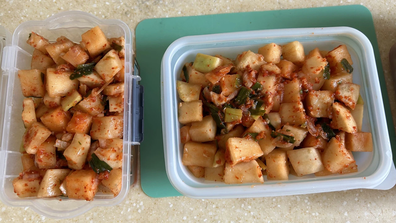 채칼이 있다면 무생채를 시도해 볼 수도 있겠지만 이번엔 깍두기를 담기로 한다.