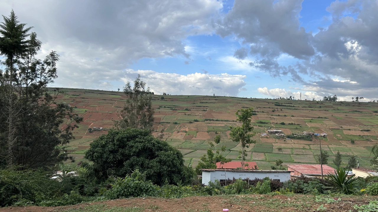 한참을 들어가니 아래로는 드 넓은 밭이 펼쳐졌고 그 위로는 언덕 같은 산이 자리하고 있다.