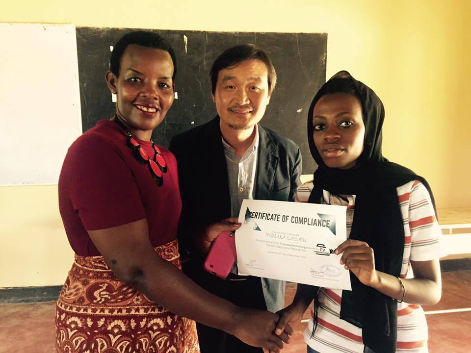 최종 결과물을 만들어 냈다는 것만으로도 너무도 자랑스러운 학생들입니다. 영상이 튀고 오디오 믹싱이 매끄럽지 않고 내레이션이 따로 놀지만, 효과 음악과 마지막 스크롤까지 모든 폼을 제대로 갖췄습니다. 의식을 중하게 여기는 이곳 전통에 따라 한 사람씩 수료장을 수여했습니다. 2주간의 노력을 이들도 소중한 기억으로 간직할 것입니다. 이제 다시 멀리 콩고, 탄자니아, 부룬디, 우간다에서 함께한 월드미션의 스텝들은 다시 자기의 자리로 돌아갈 것입니다.