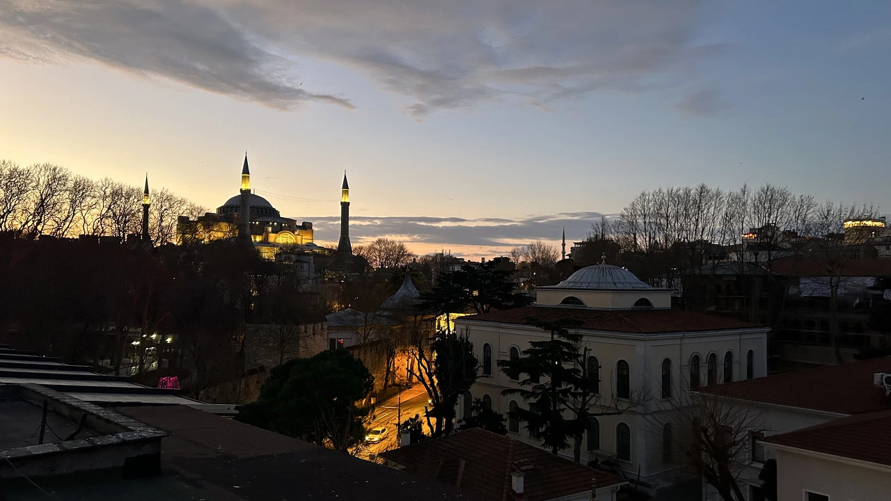 해지기 전에 숙소로 들어왔다는 안도감과 따뜻한 샤워의 물세례로 몸은 노곤노곤 하면서도 약간의 허기와 도심의 야경에 대한 궁금증으로 새 힘이 돋는다. 방의 창으로 바깥을 내다보니 환상적인 조명을 받고 우뚝 서있는 아야소피야가 한눈에 들어왔다.