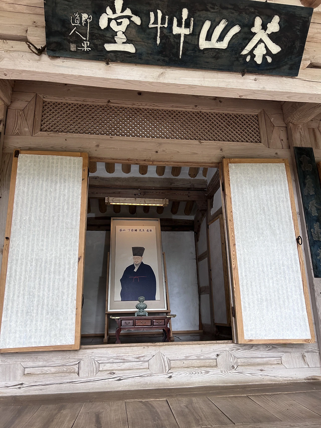 초당의 열린 방문 안에는 온화한 미소를 머금은 다산의 초상화가 놓여있다. 쓸쓸한 유배객을 찾아먼 길을 달려온 방문객을 맞이하는 반가움이 실린 느낌이랄까!. 18년간이라는 오랜 격리와 고립의 시간을 그는 어떻게 견뎌낼 수 있었을까?