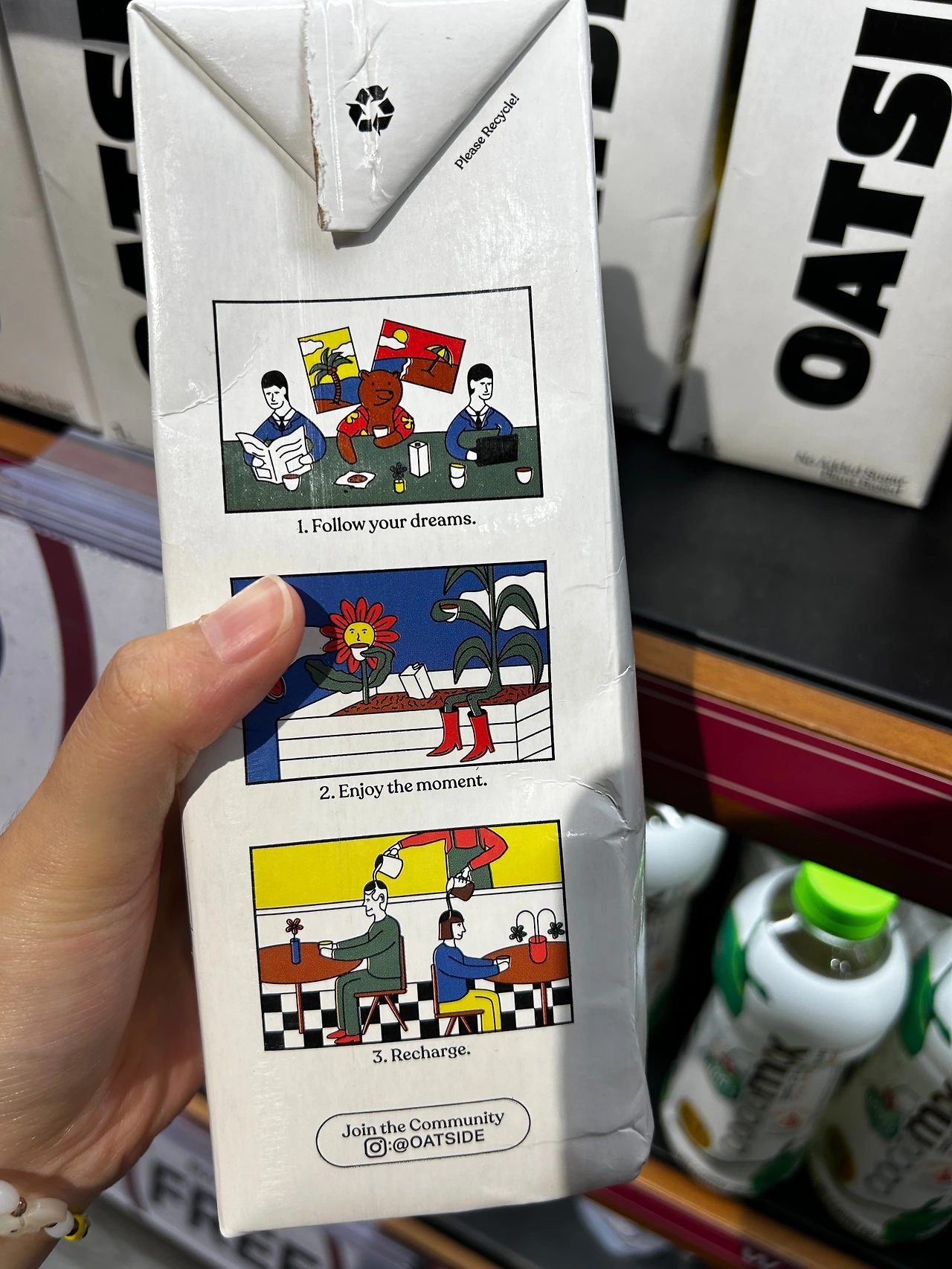 아래는 싱가포르 여행 중 발견한 오트밀우유에 적혀있던 글귀다.