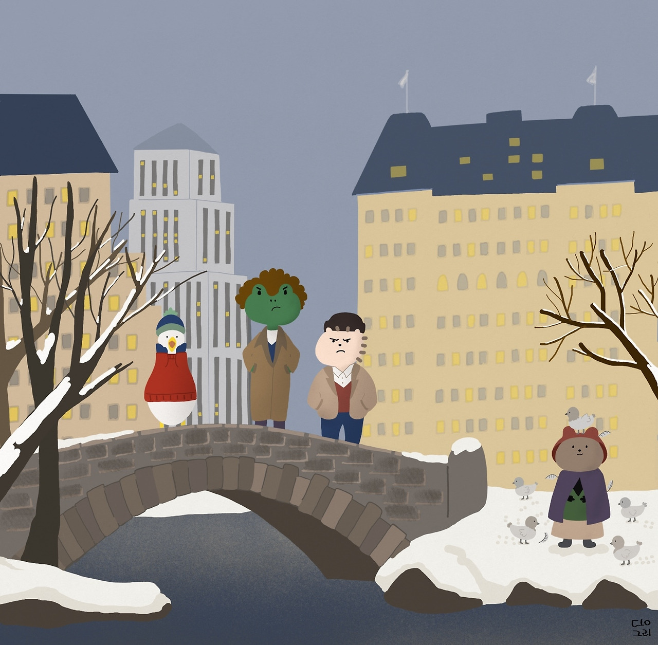 올봄부터 시작한 달력 만들기 모임에서 만든 캐릭터들을 활용해, 내가 좋아하는 영화나 드라마를 패러디하며 그림을 그리고 있다. 이 작업에서 우리 가족은 각자의 개성을 살린 캐릭터로 재탄생했다.