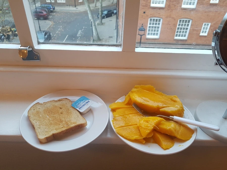 오늘도 부지런히 아침을 준비한다. 한국에 있을 때보다 더 부지런히 아침을 챙겨 먹는 것 같다. 부엌에 있는 식빵을 프라이팬에 앞뒤로 노릇노릇하게 굽고, 어제 M과 시장에 갔다가 함께 산, 하나에 1유로짜리 망고도 큼직하게 잘라 접시에 담는다. 한국에서는 이렇게 다디단 생망고를 통으로 잘라 양껏 먹는 호사를 누려본 적이 없다. 한국에서 망고는 아주 비싼 과일인 축에 속하므로, 건조망고나 아이스망고가 아니면 사 먹을 엄두가 나지 않는다(망고 하나에 5천 원은 거뜬히 넘으니까-이렇게 온난화가 심화되다간 한국에서도 망고를 싸게 먹을 수 있을지 모르지만 그런 일은 없었으면-).