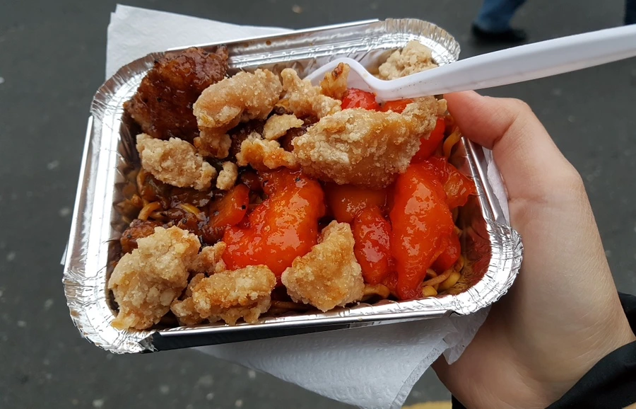 시장에는 간단한 먹거리를 파는 노점들도 많아서 점심은 그곳 중 한 곳에서 때우기로 했고, 국적이 불분명한 상인으로부터 국적이 불분명한 치킨과 볶음국수를 사 먹었다.