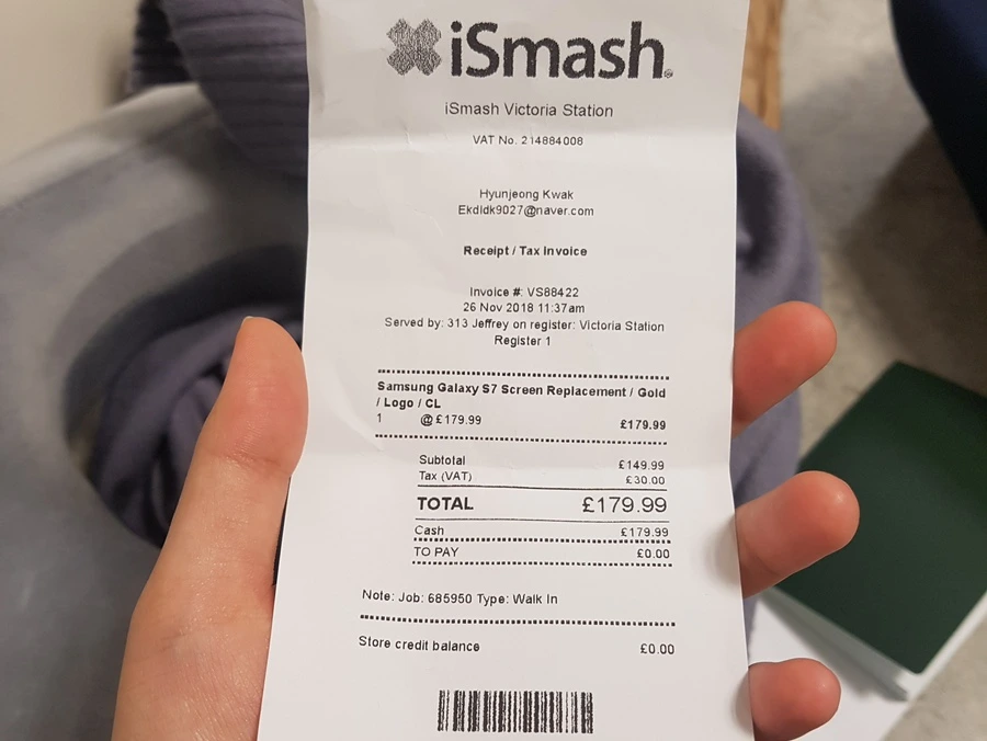 'ismash'라는 가게가 있었고(아이러니하게도 smash란 박살 낸다는 뜻이 아니던가?), 후드티를 입은 무표정의 직원이 휴대폰을 요리조리 보더니 흔쾌히 수리를 해주겠다기에 지체 없이 직원에게 휴대폰을 맡겼다.