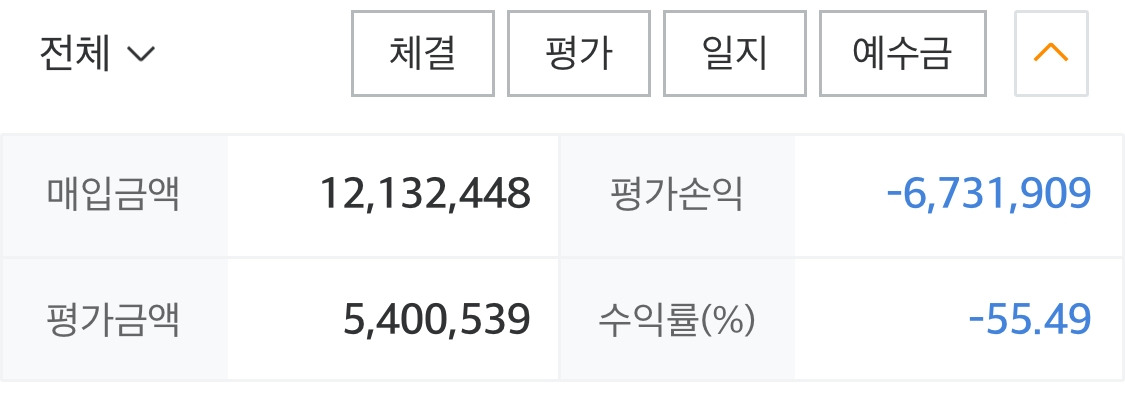 그러고 나서 몇 년이 지났냐면 5년이 지났다. 몇 개 종목은 팔아서 1,000,000원 남짓의 이익을 확정했다. 그러고 나서 지금의 나의 주식 상황은 어떻냐고? 놀라지 마시라. 무려 700만 원의 손실이다. 아니 정확하게 말하자면 6,731,909원의 손실이다.
