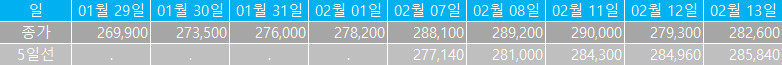 주가가 5일선 위로 상승하자 5일선이 지지의 역할을 합니다.
