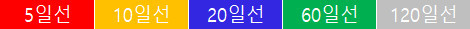 주가가 60일선 지지를 실패하자, 120일선이 지지의 역할을 대신합니다.